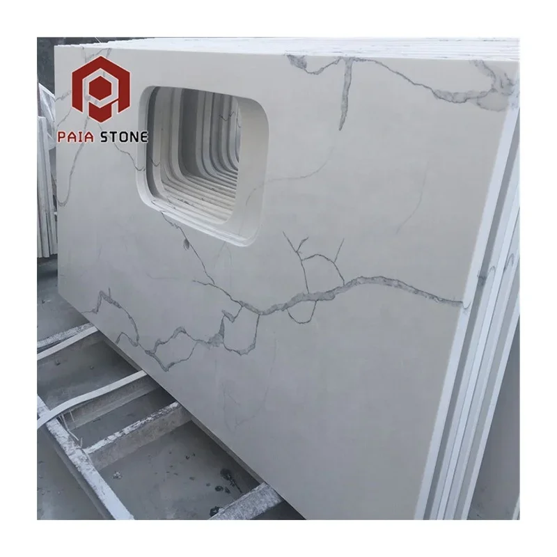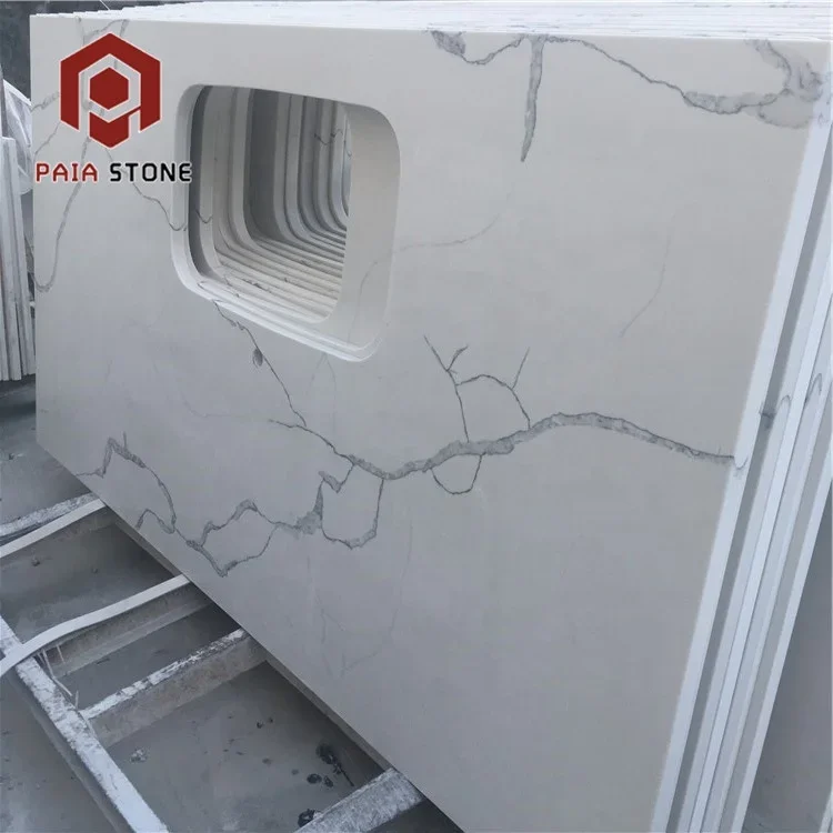 كوارتز أبيض من نوع كالاكاتا بأسلوب أمريكي مخصص واقتصادي لأسطح المطبخ وأسطح غرف الاستحمام وأسطح الجزر