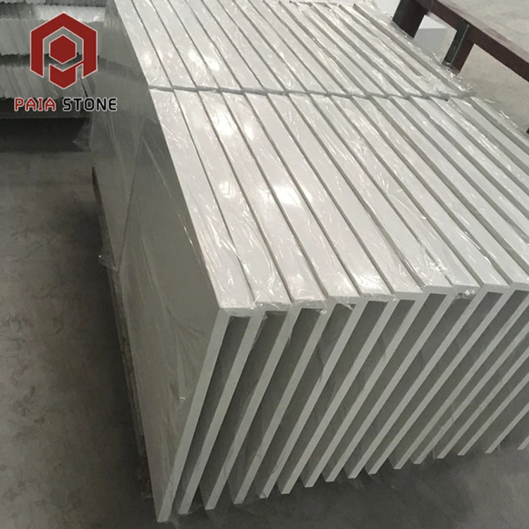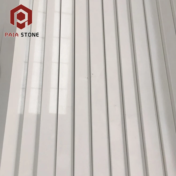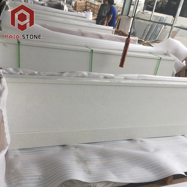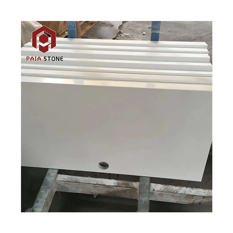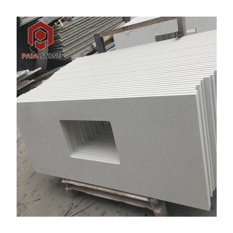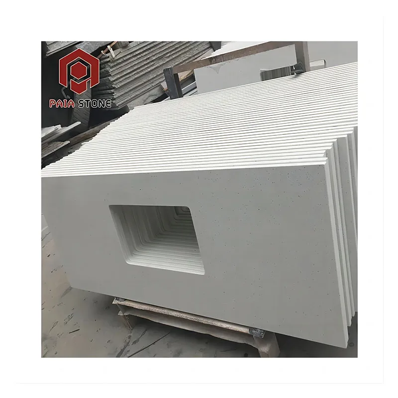 حجر صناعي أبيض جليدي لامع لمطبخ من كوارتز، سطح صلب عصري لطاولات المطبخ