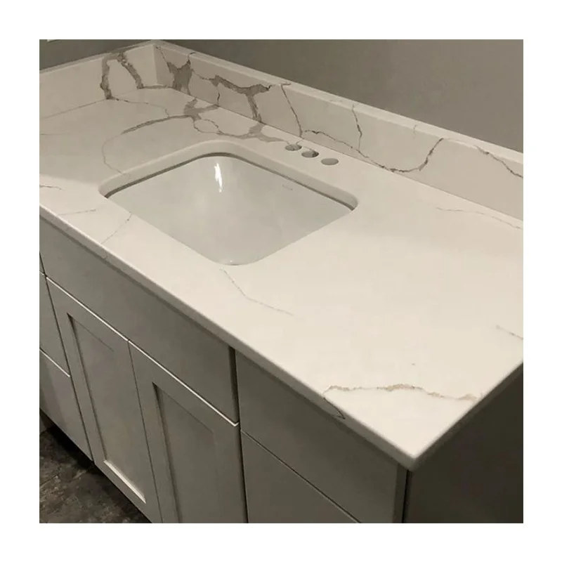 طاولة فانتي متينة عصرية من كوارتز كالاكاتا الأبيض السطح الصلب سطح طاولة مطبخ اصطناعي طعام  حمام  المنزل  اللaminates