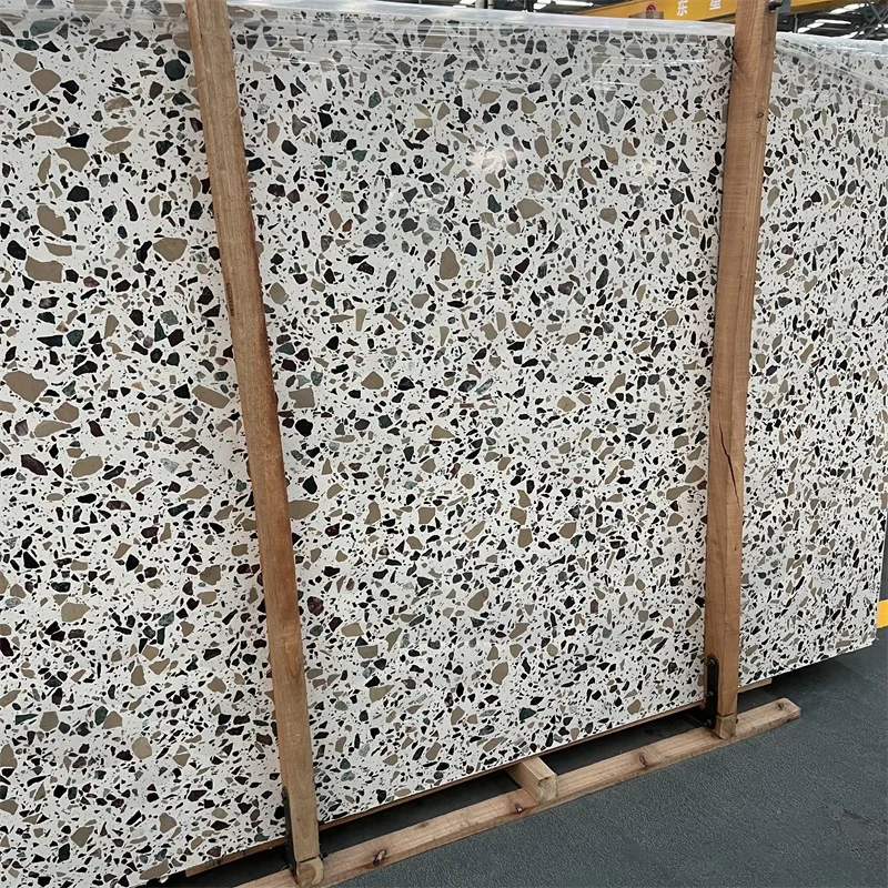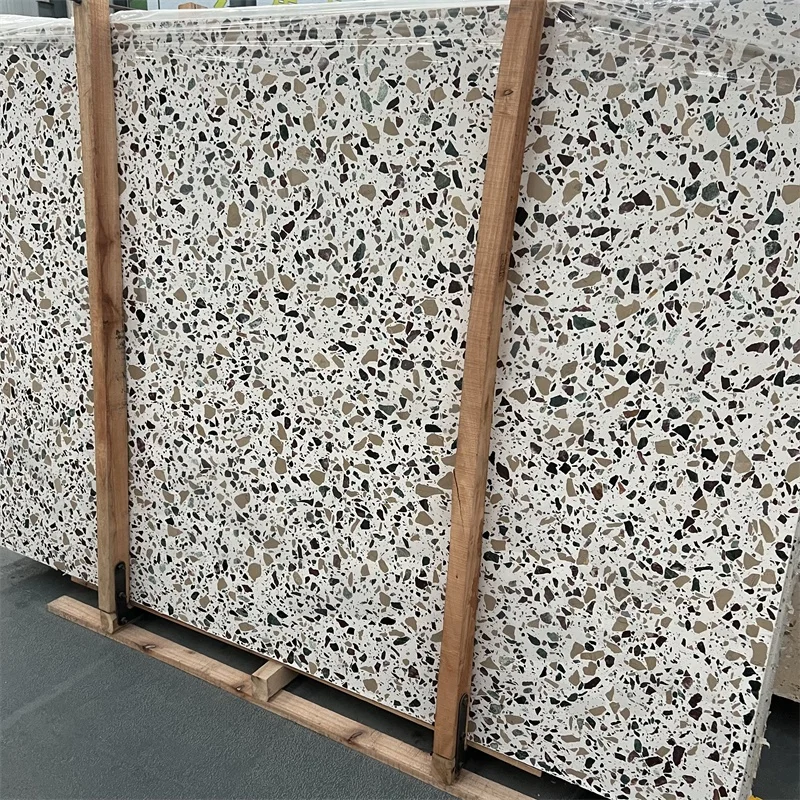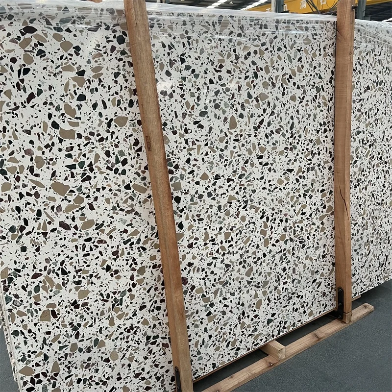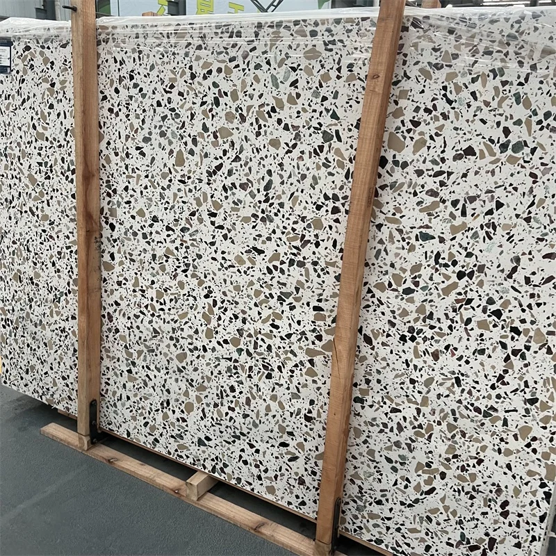 ألواح حجر اصطناعي عالية الجودة بلون البيج من نوع التيرازو لتصميمات الداخل، تُستخدم في تغطية الجدران والأرضيات على حد سواء