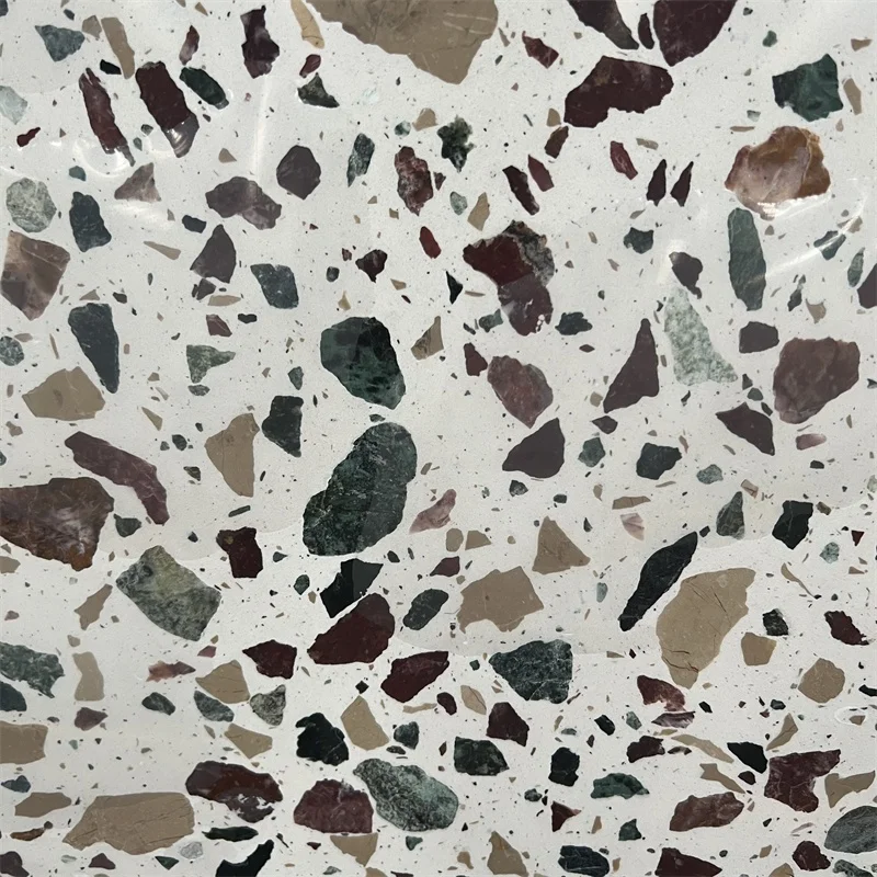 أ1: التيرازو هو مادة أرضية تتكون من خليط من الرخام أو الزجاج أو مواد تجميع زخرفية أخرى، ممزوجة إما في مصفوفة أسمنتية أو إيبوكسية، ثم تُطحن وتُلمَّع للحصول على سطح أرضي أملس.