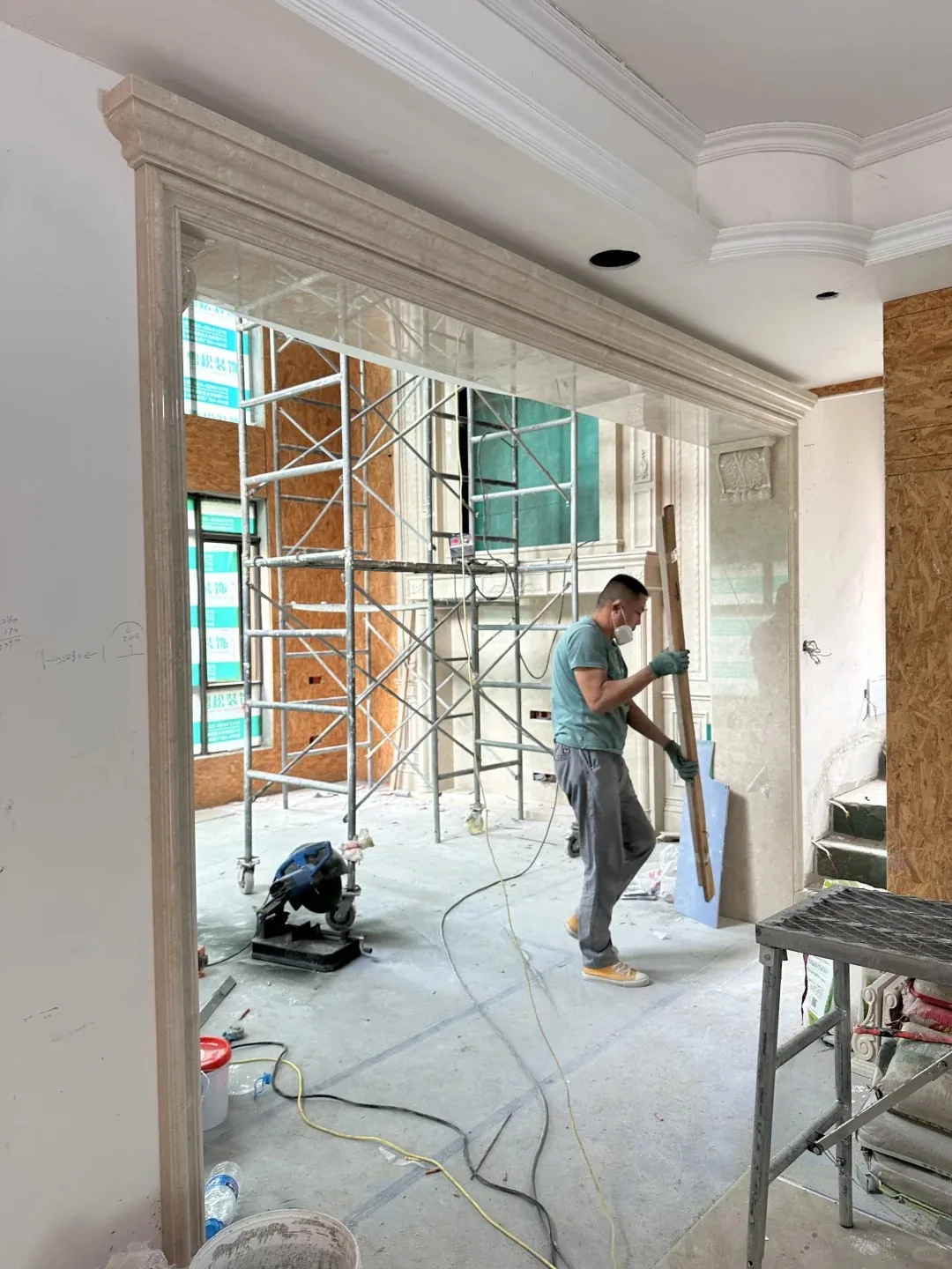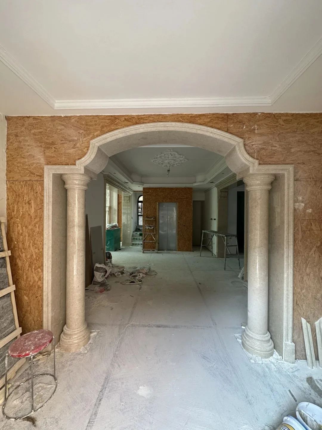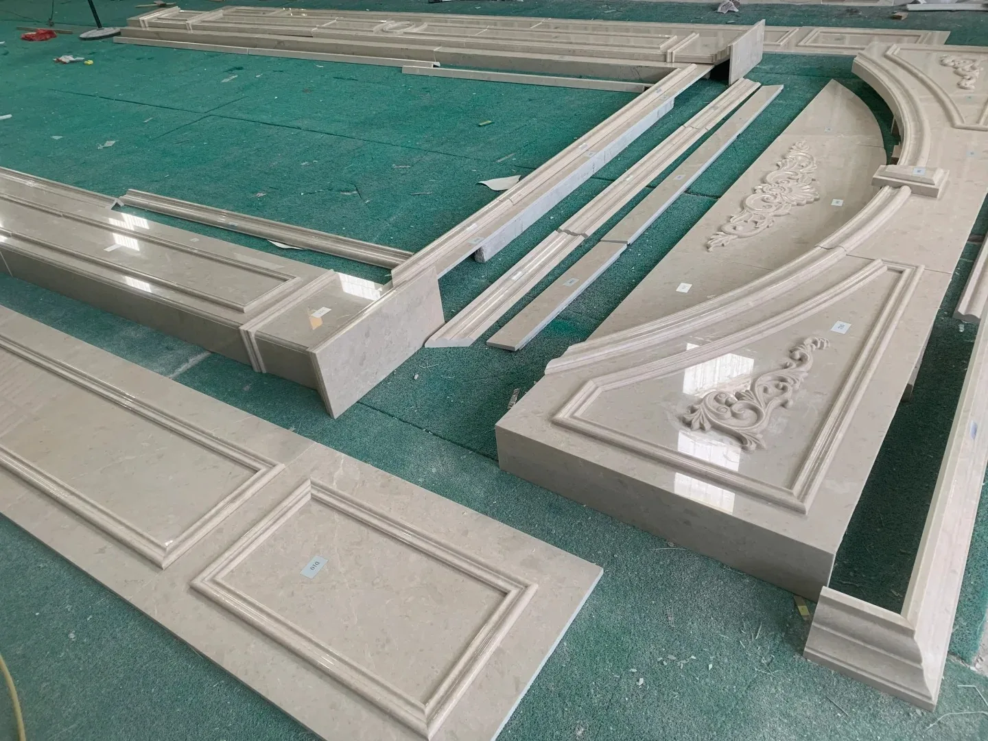 أبواب داخلية حديثة من الرخام البيج، وجدران مدفأة، ومدرجات، وأرضيات للفنادق وحمامات المرايا (الحوض والمرآة)، ومنتجات عالية الجودة من الحجر، مبيعات مباشرة من المصنع