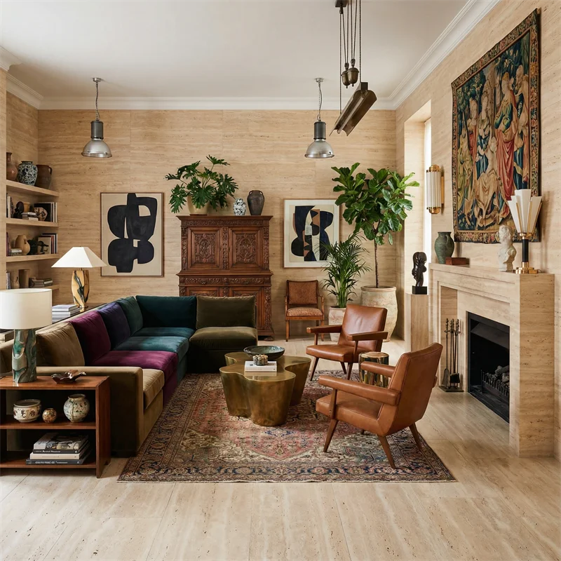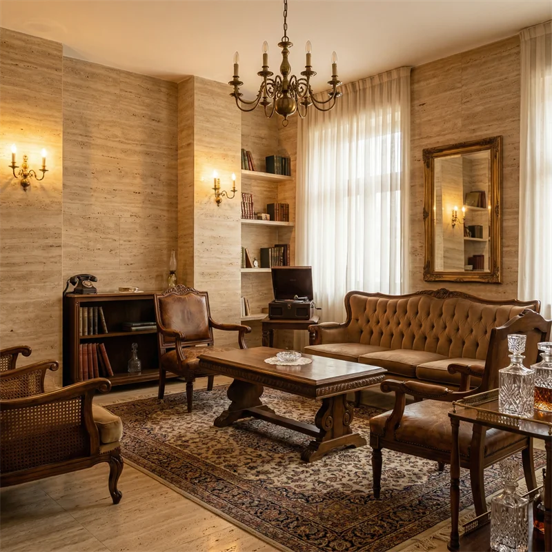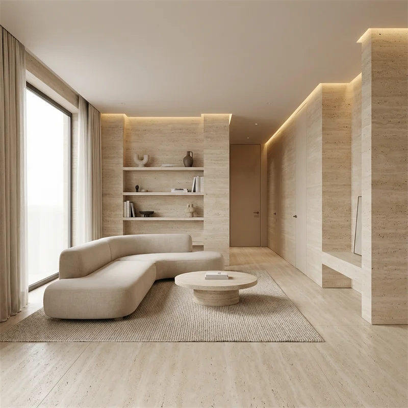 أرضيات ترافرتين طبيعية وتشطيبات داخلية للواجهات الخارجية والحمامات، كسوة حجر ترافرتين للواجهات الخارجية