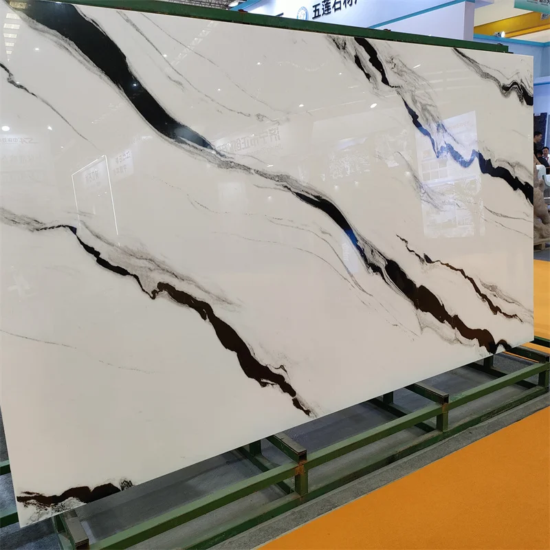 بلاط أبيض على شكل دب قطبي أبيض من زجاج نانو وحجر متبلور مقاوم للتلوث، حجر صناعي أبيض لطاولة المطبخ