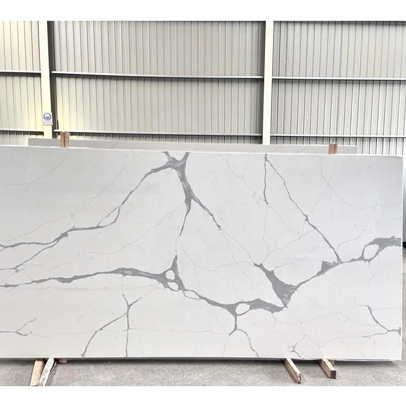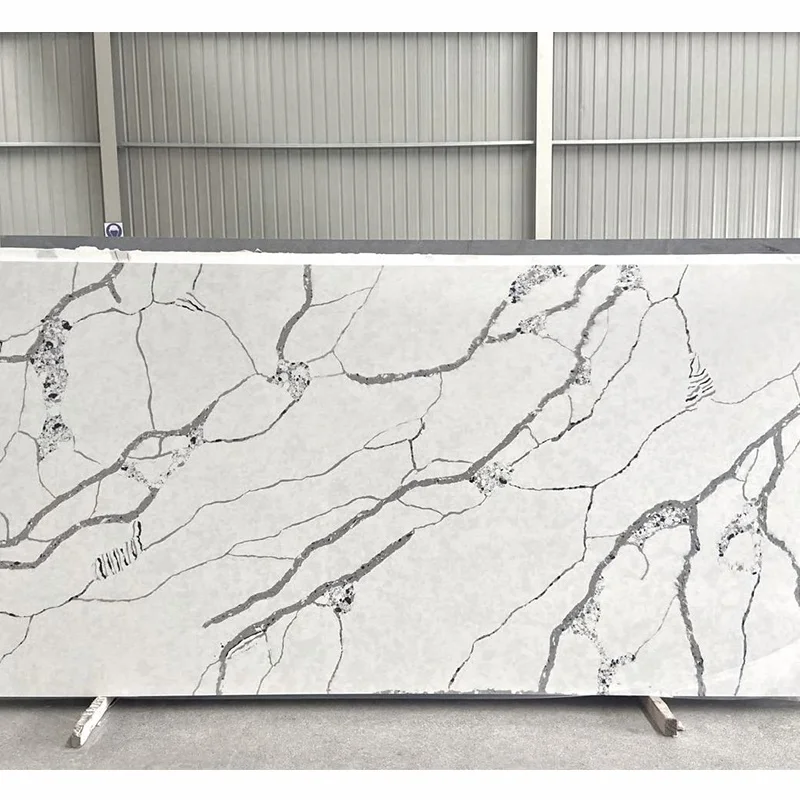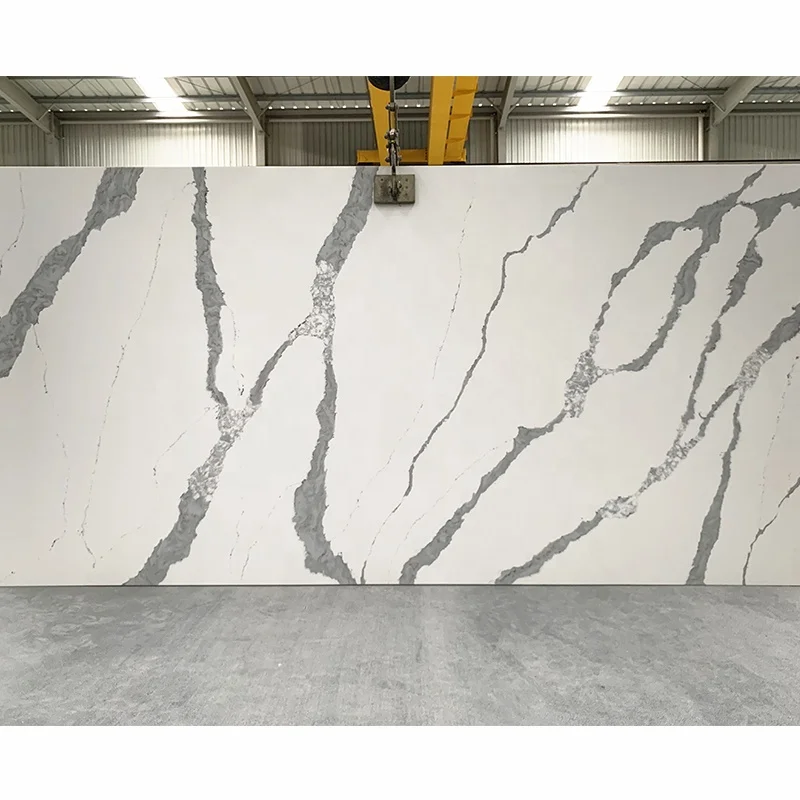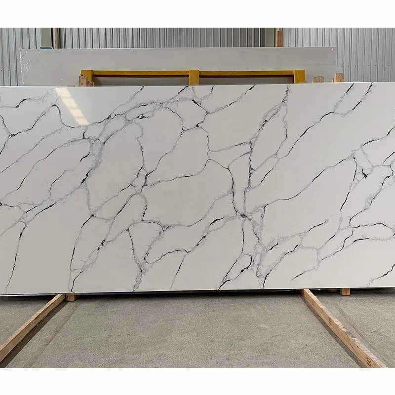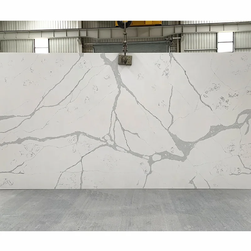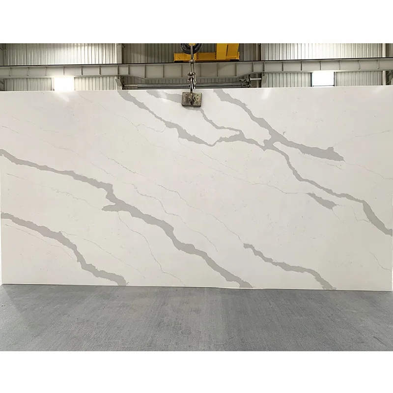 لوح حجر كالاكاتا الكوارتزي الأبيض عالي الجودة وبسعر المصنع لكونترتوب المطبخ، بالجملة، حجر كوارتزي مهندس