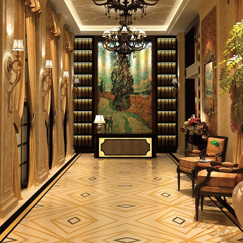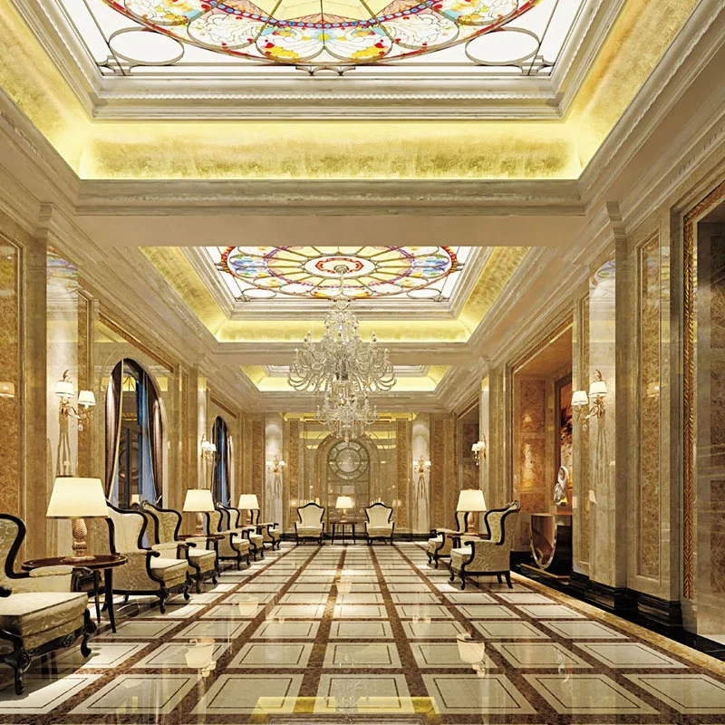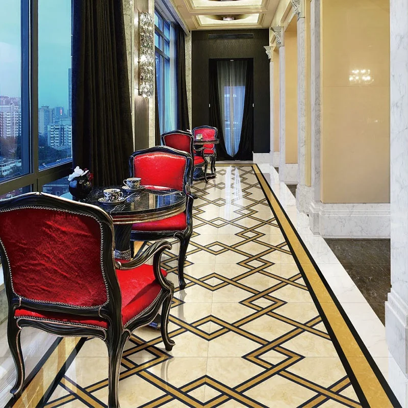 Home Interior Corridor Waterjet Medallion Pattern Marble Floor Tiles Design
