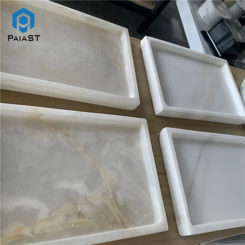 Yüksək satışda olan, fərdiləşdirilmiş, yüksək keyfiyyətli ağ mərmər kvadrat tabaq