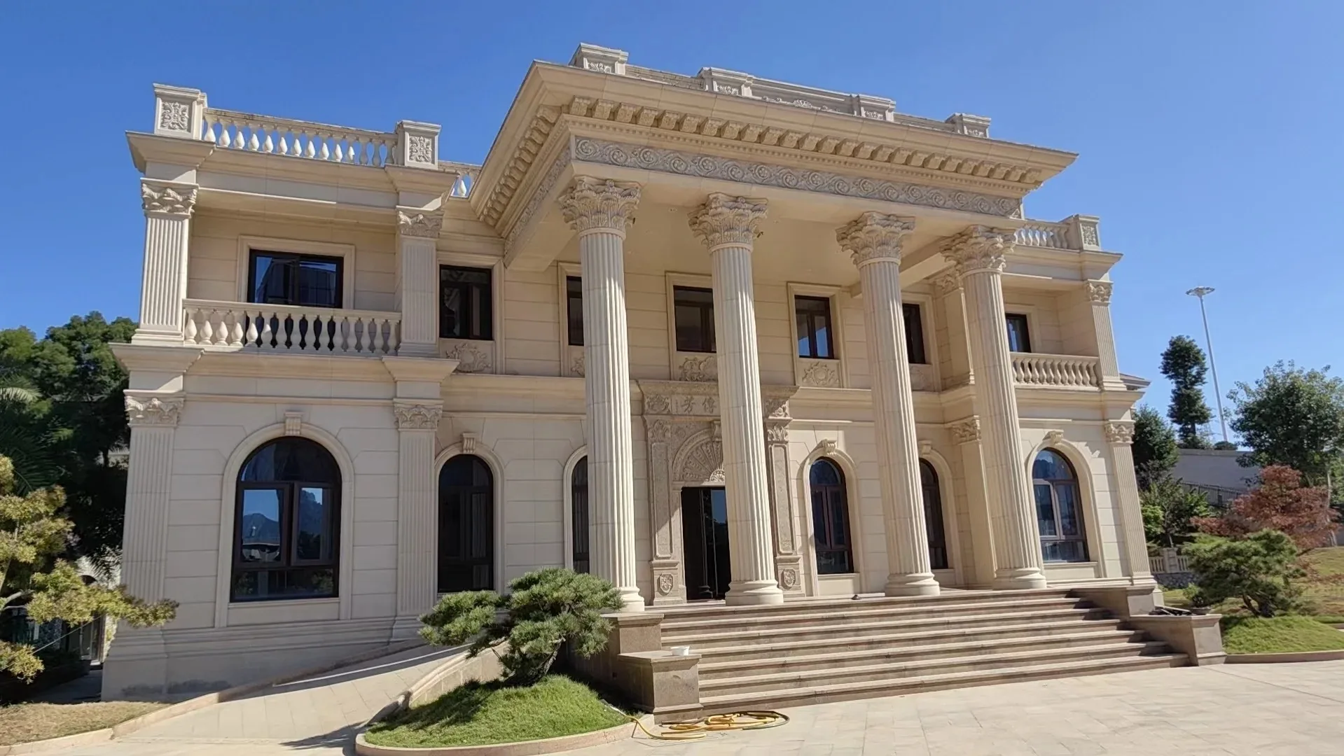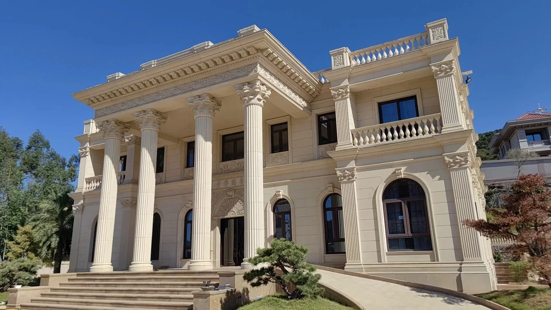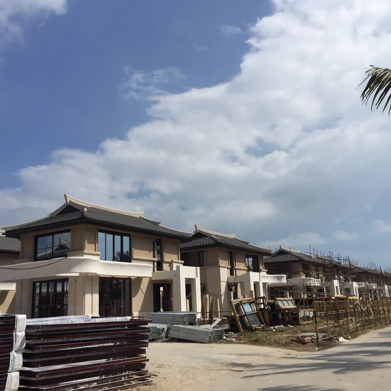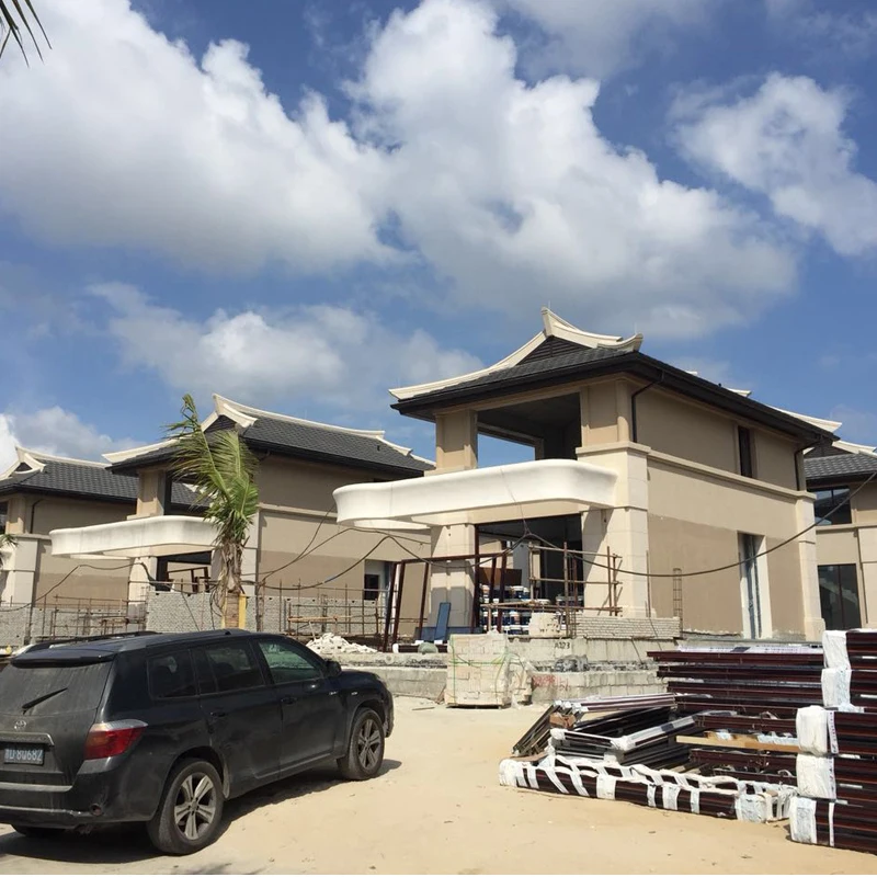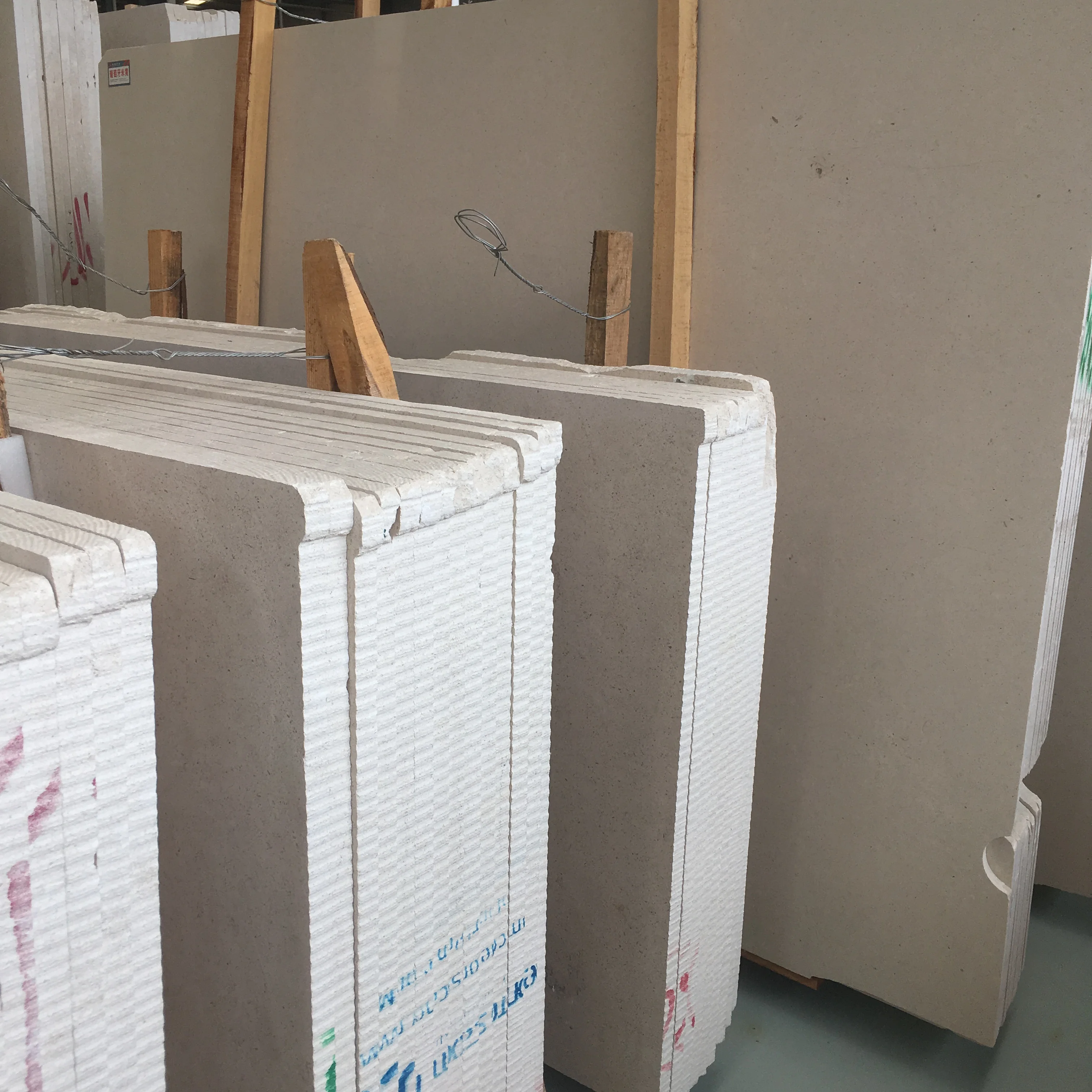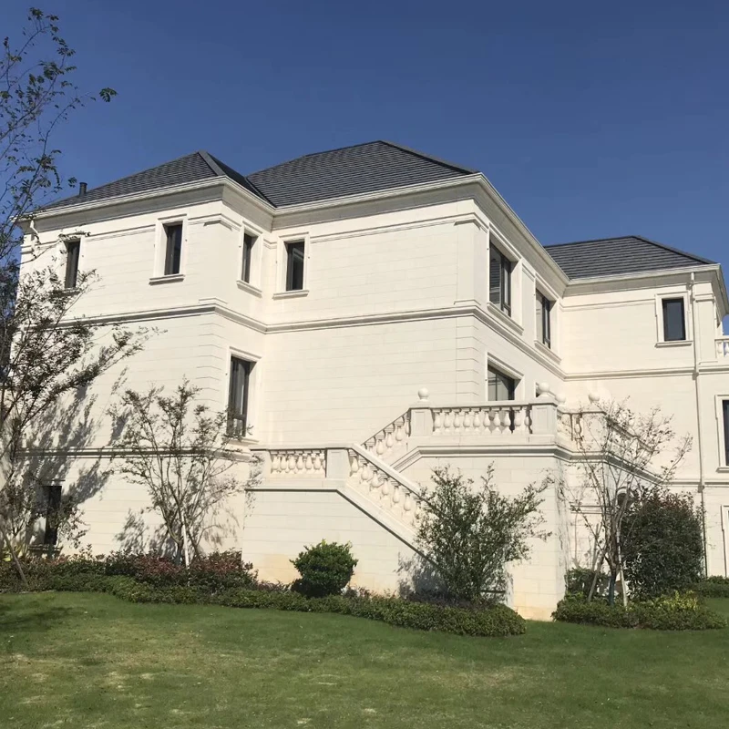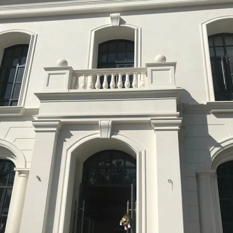 Съвременен дизайн – плочки от естествен камък (варовик) за външни стени на проекти за вила, хотел и църква – използвани на открито с матирана и полирана повърхност