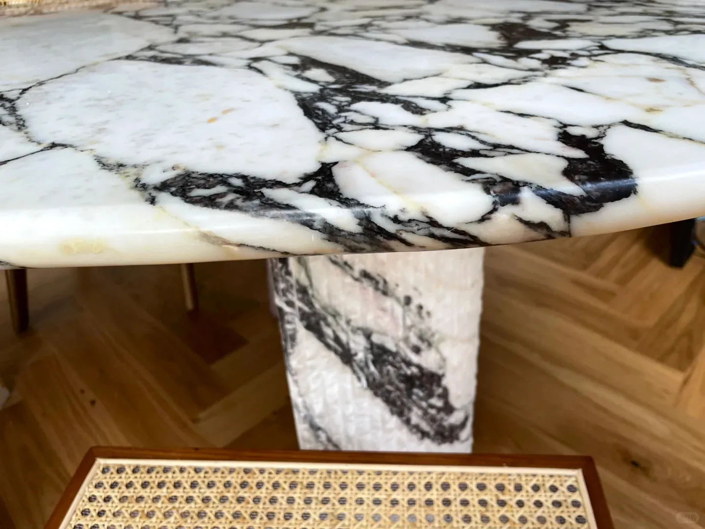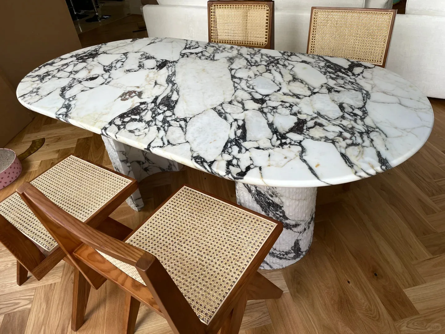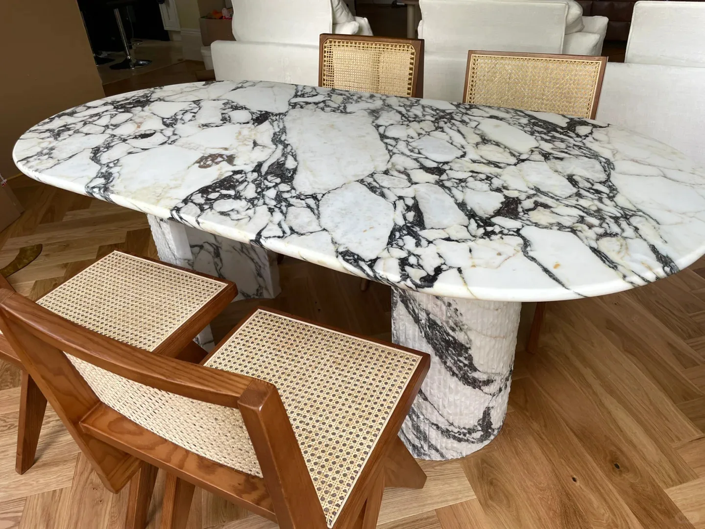 Съвременна овална маса за кафе и хранене от естествен луксозен мрамор Calacatta Violet Calcite, полирани, висококачествена за вила и интериор