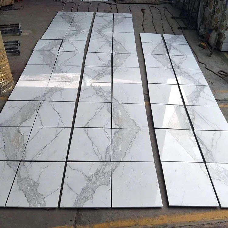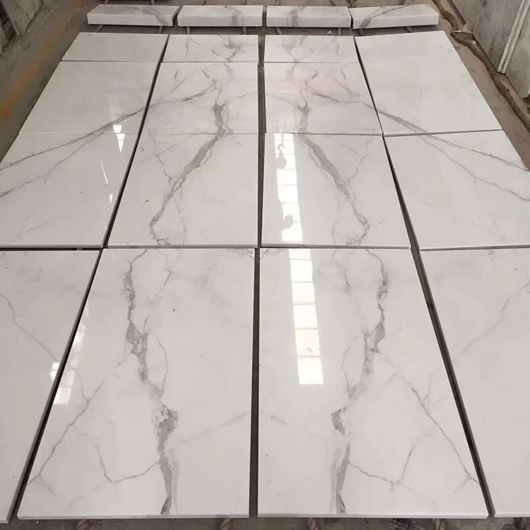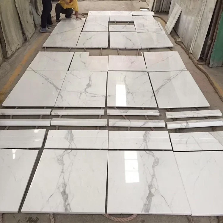 Smuk Statuario-hvid marmor fra fabrikssalg – hvide marmorfliser til badeværelsesvæg