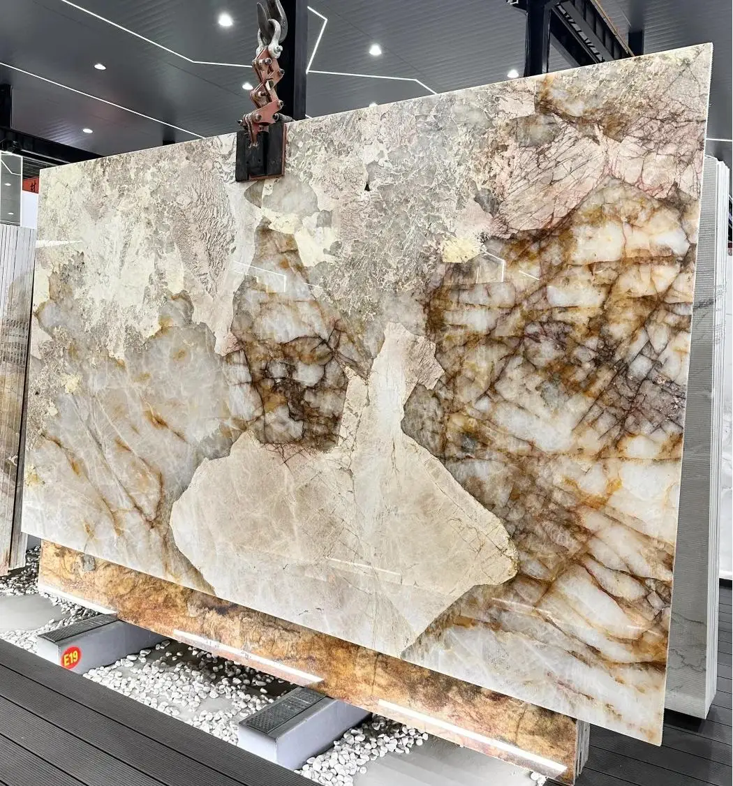 Tilpasselig brasiliansk Patagonia-stor-kristal Alpinus-kvartslit til spisebordsplade, kaffebordstøv, arbejdsplade og hjemmedekoration