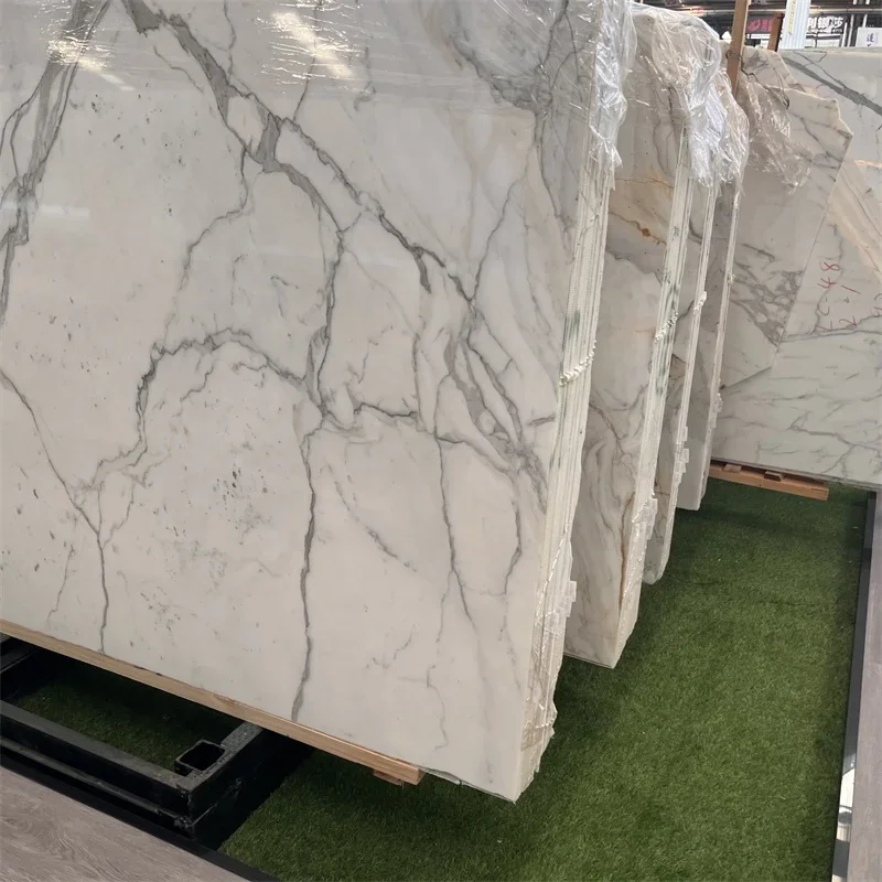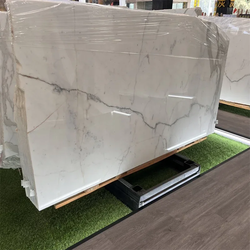 Italienske high-end Calacatta-hvide marmorblokke til hjemmets vægbaggrunddesign, hvide marmorfliser til gulv