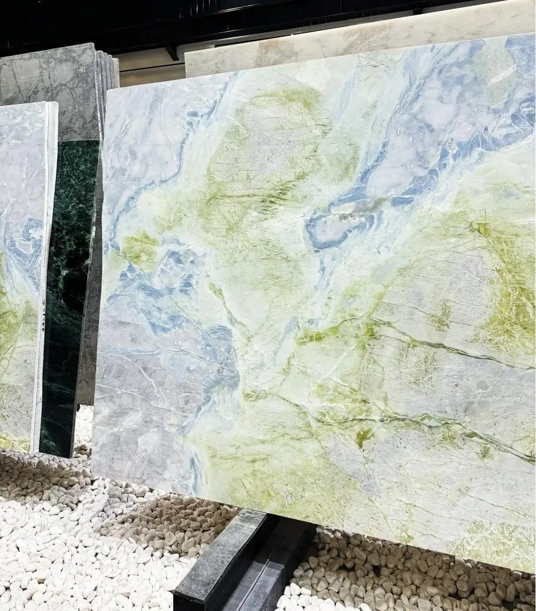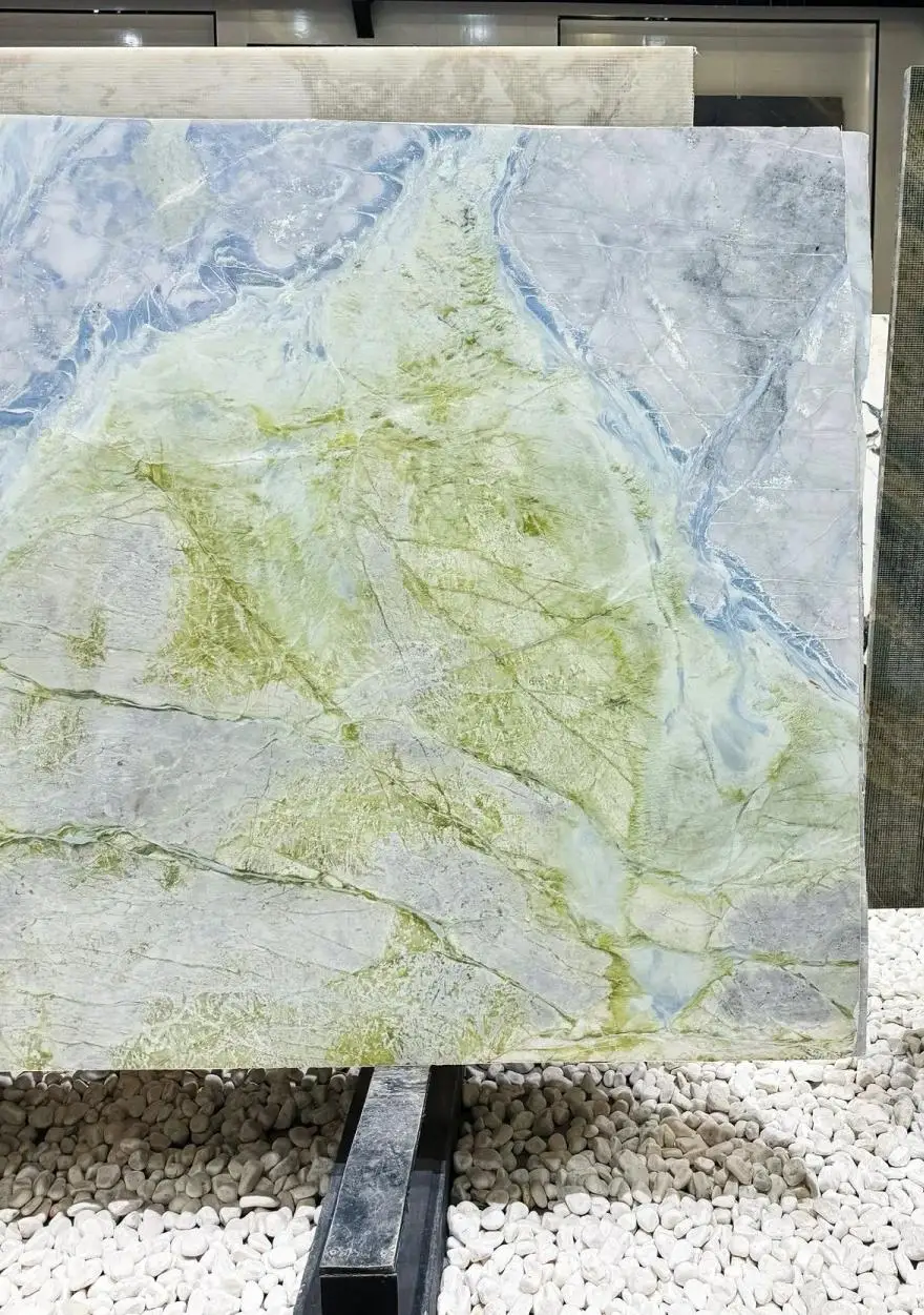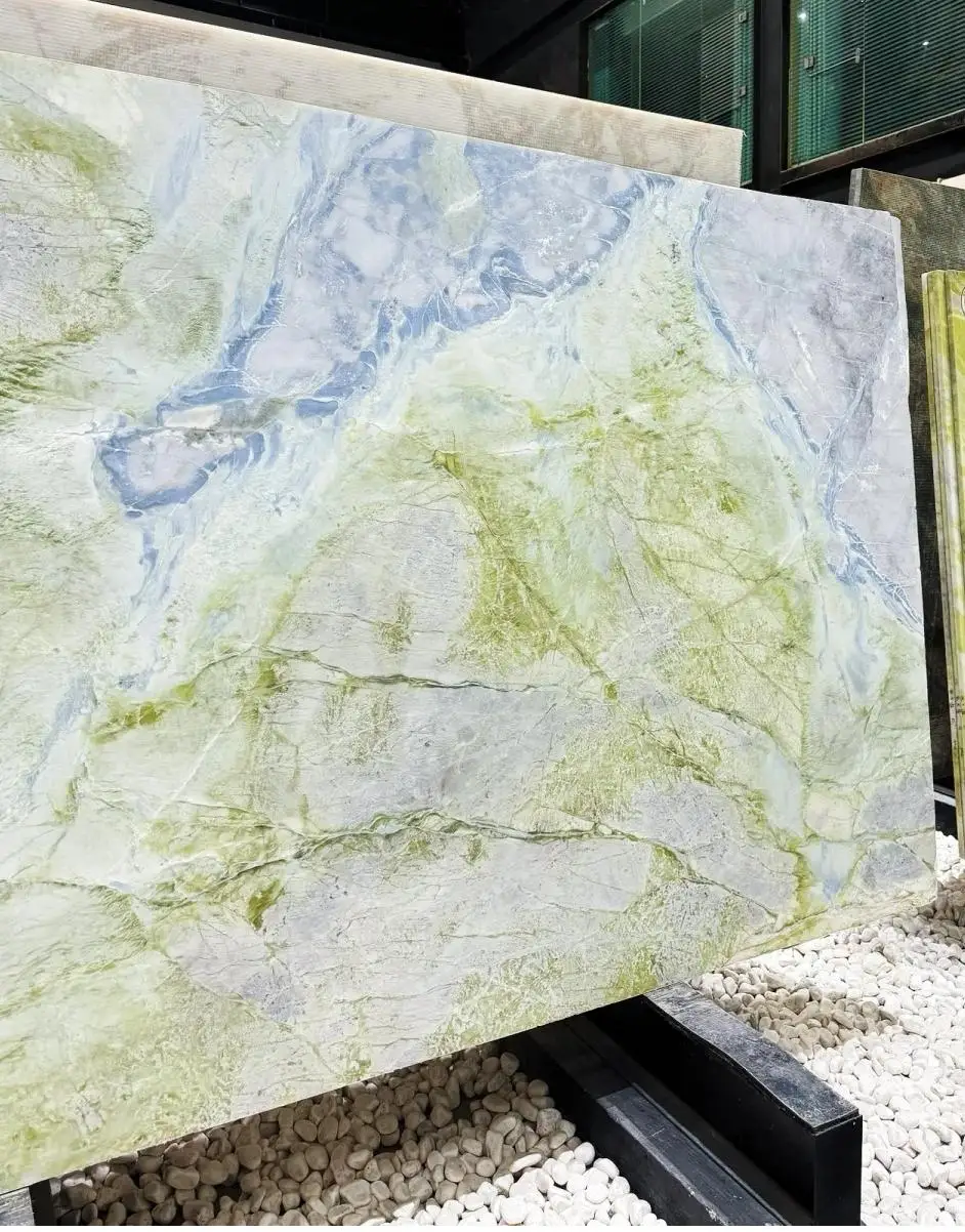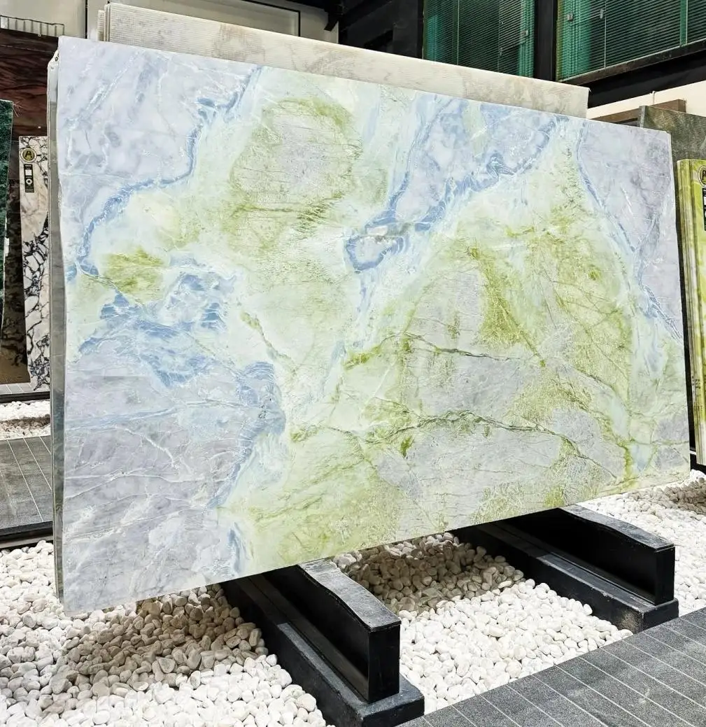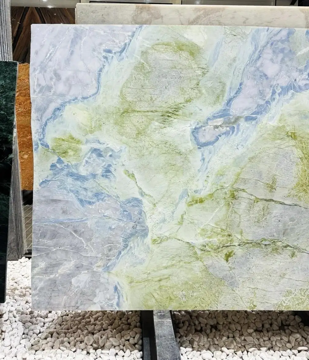 Højtkvalitets luksusmarmor – naturlige grønne marmortegl med blå årestrukturer til luksusindretning af vægge og gulve