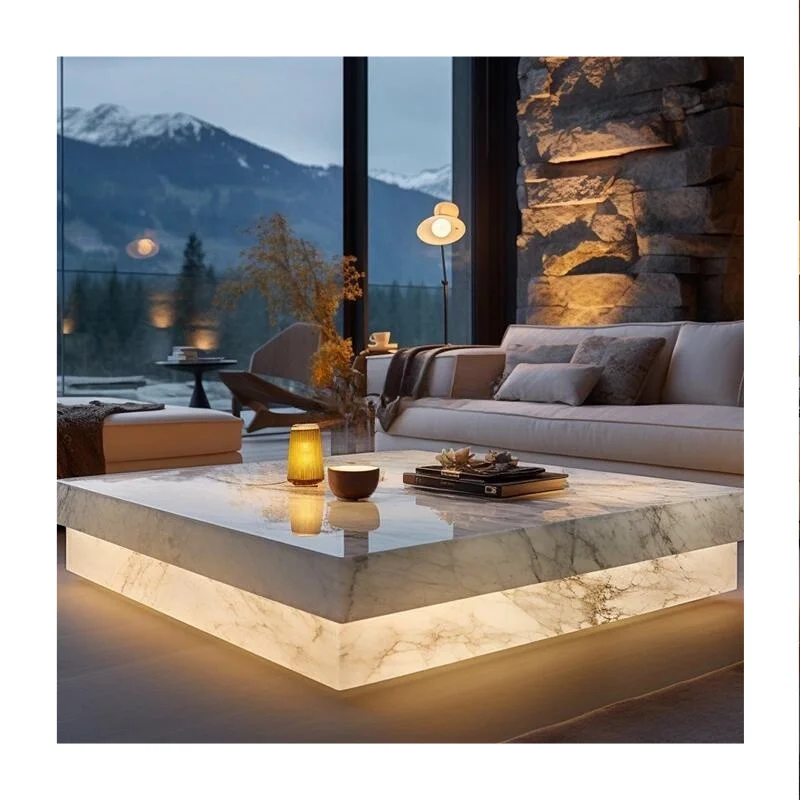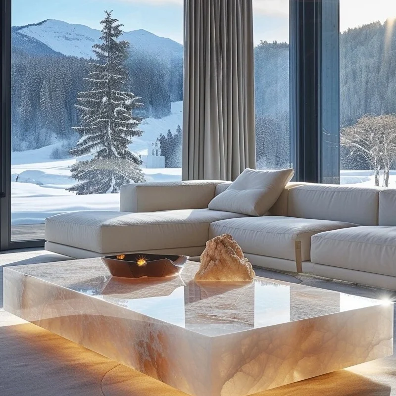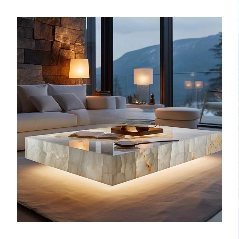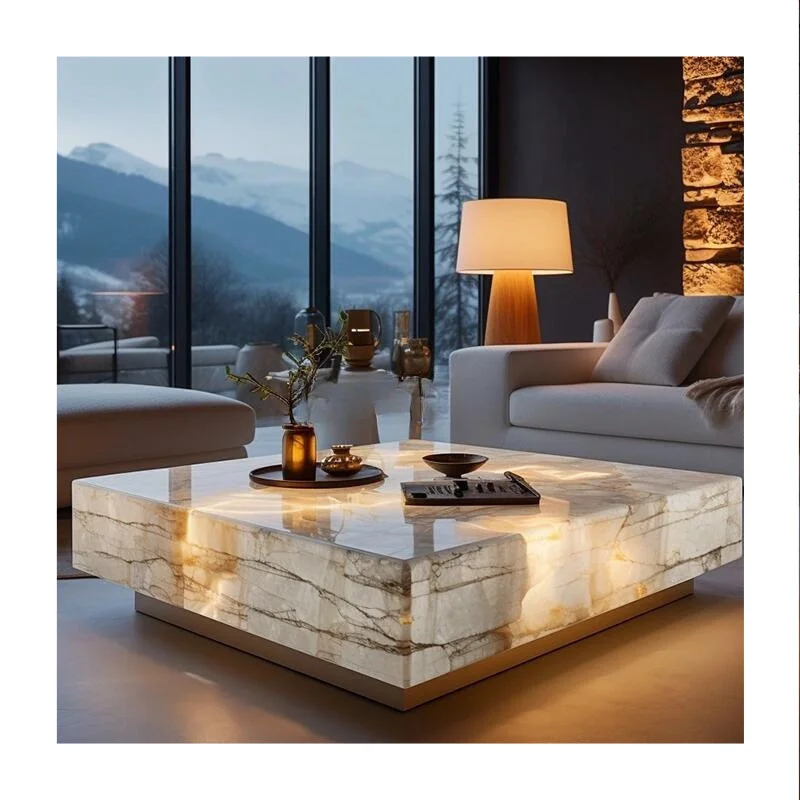 Poleret onyx-sofabord uden skuffe, euphotisk rektangulær natursten, 1000x1000x30 mm eller tilpasset størrelse, moderne marmor