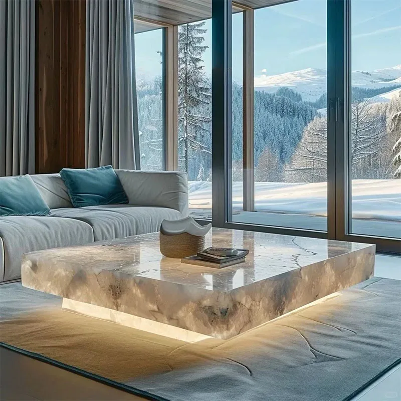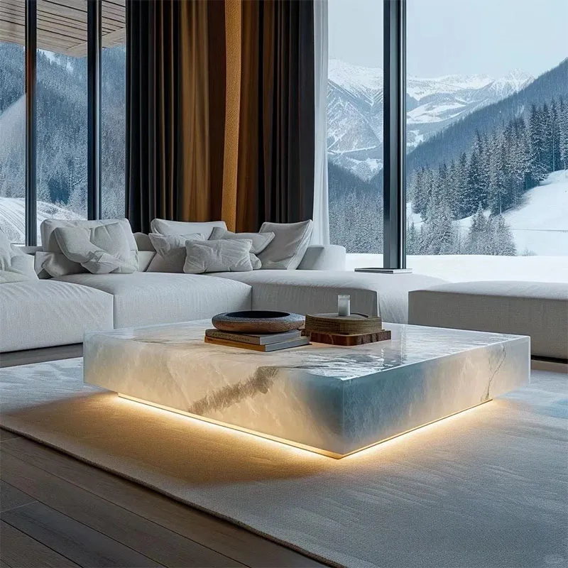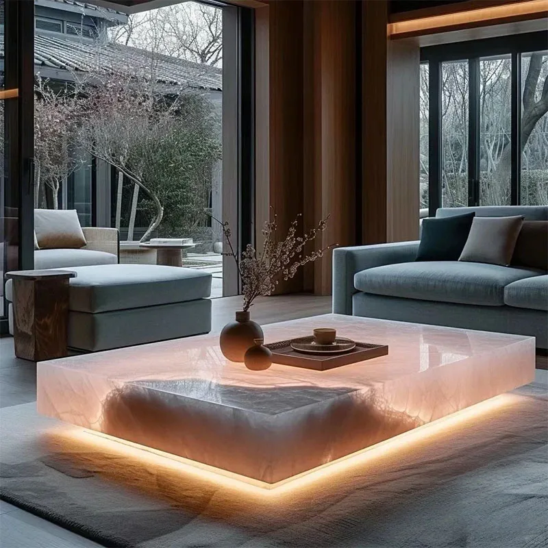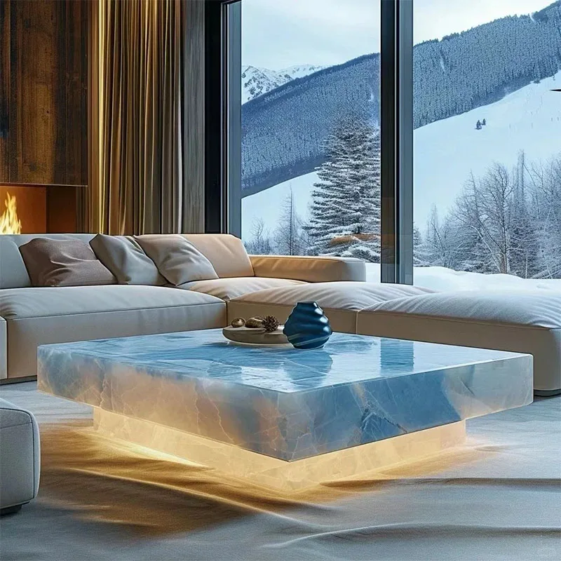 Polering Blå Onyx uden Skuffe Kaffeboje Euphotic Rektangel Natursten 1000x1000x30 Mm eller Tilpasset Størrelse Moderne Marmor