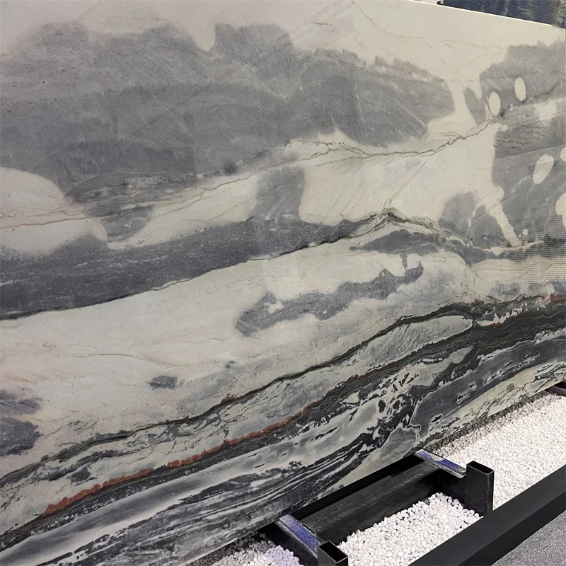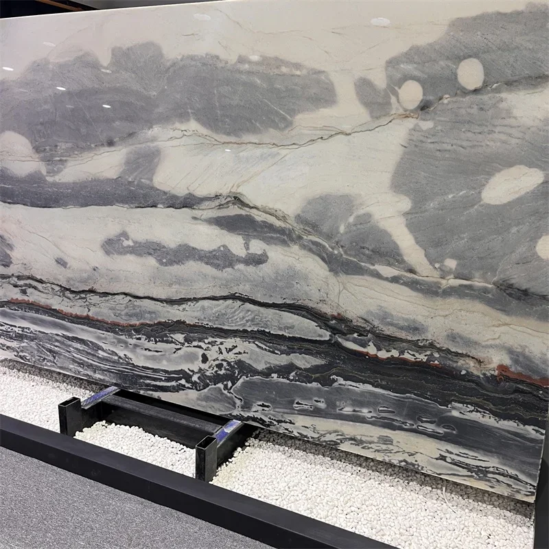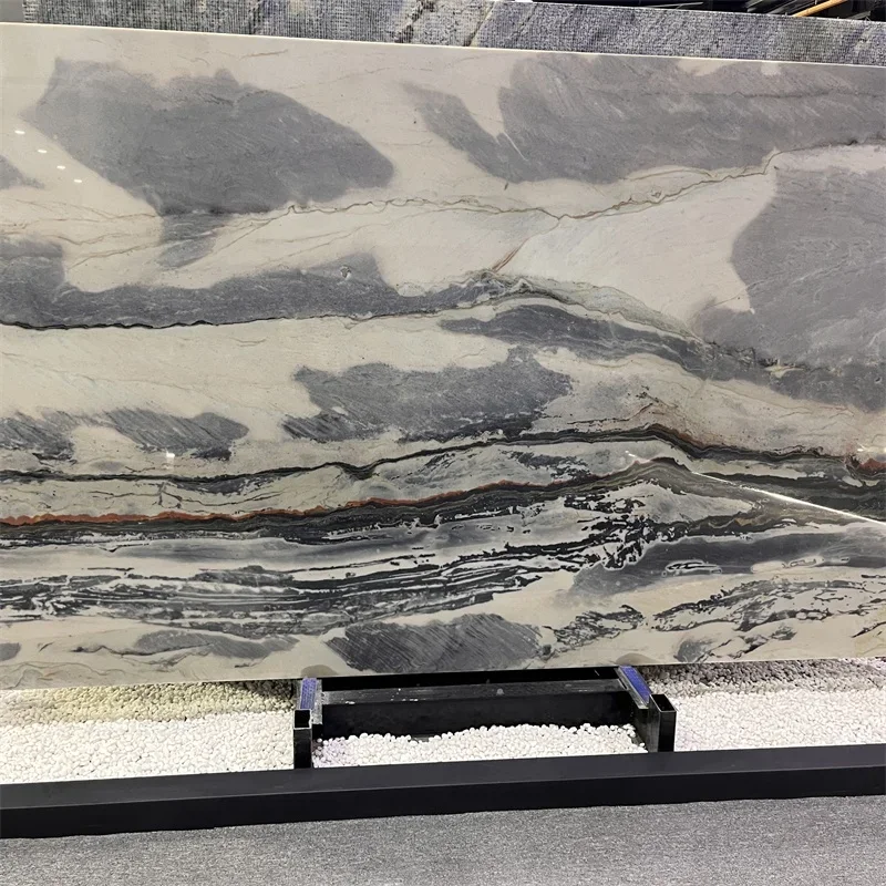 Topkvalitets Brasiliansk Luksus Bethany Blue Kvartsitplade til Baggrundsvægdesign, Bogmatchet Blå Eksotisk Stenfliser