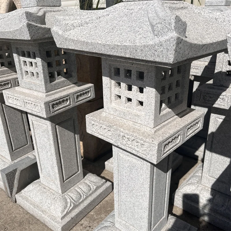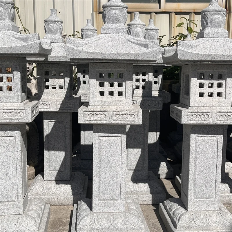 Engrospris stenlygte-skulptur til udendørs havepynt, håndhugget lygtestatue i japansk stil