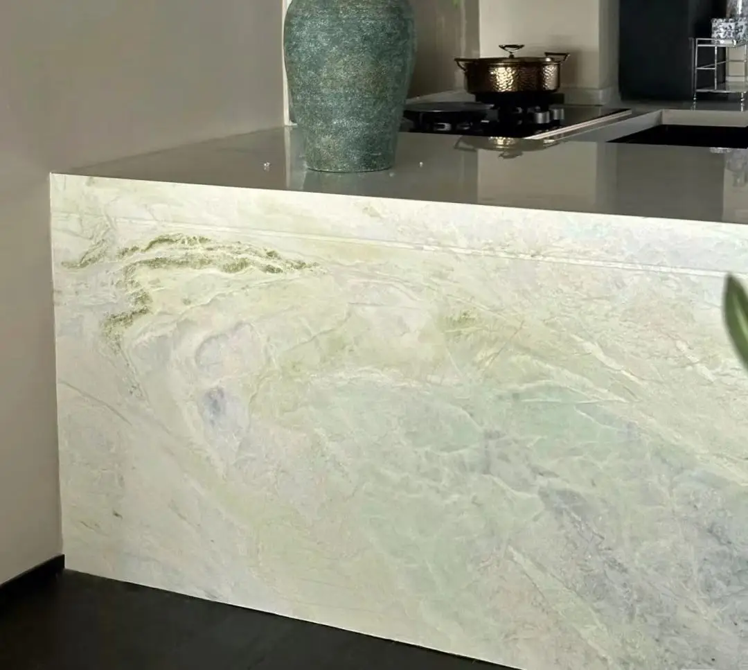 Modernes natürliches Grün-Marmor für die Innensanierung von Küche, Bad, Waschtisch und Boden sowie Treppen in Küche und Bad