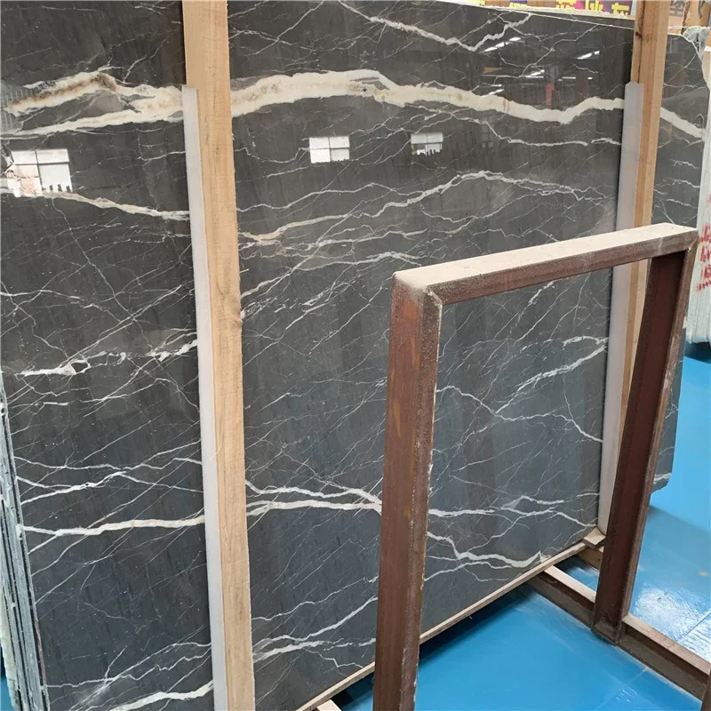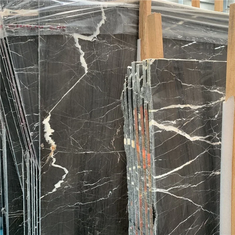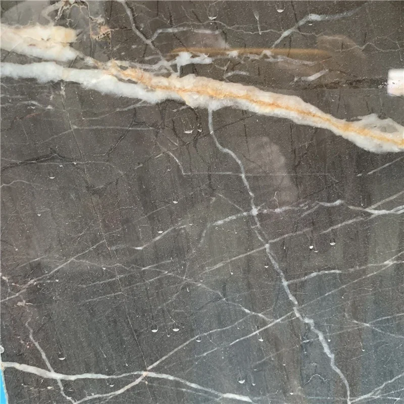 Polierter hochwertiger Lauren Platinum Marmor in Plattenform, schwarzer Marmor mit goldfarbenen Adern, Bodenfliesen