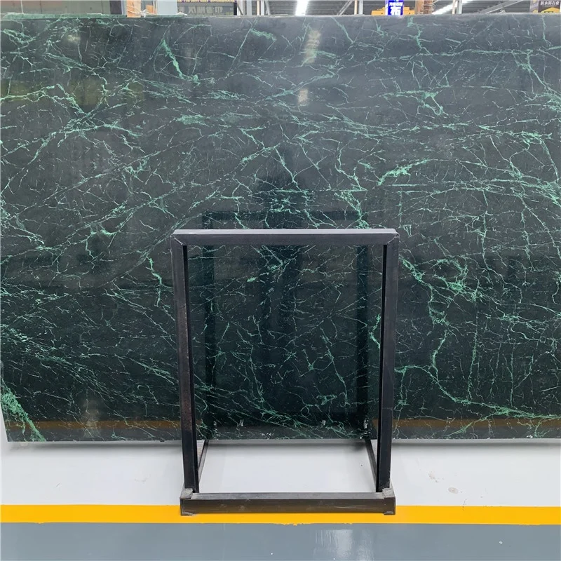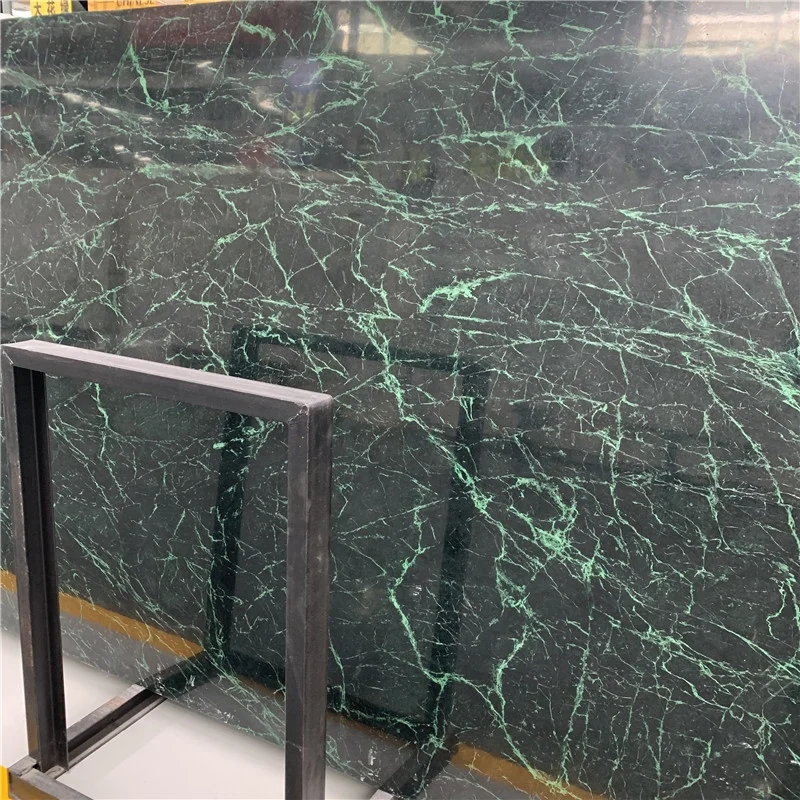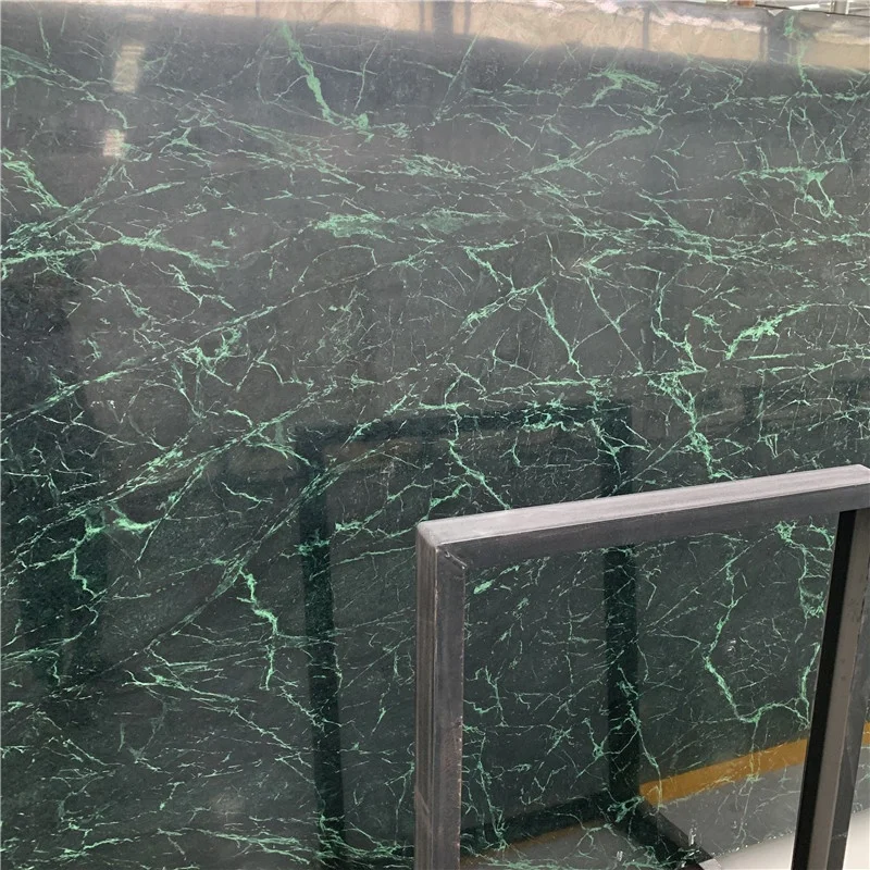 Hochwertige dunkelgrüne Marmorplatte für Innenwandgestaltung; polierter grüner Marmor-Couchtisch für Hotel-Dekoration