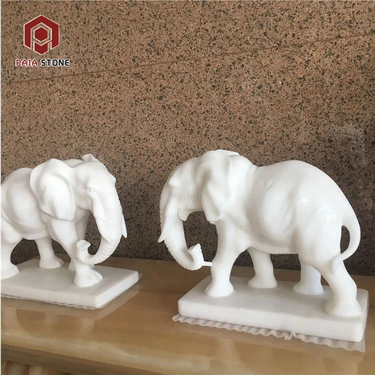 Estatuas modernas de elefante, talladas a mano en mármol natural puro blanco, para decoración del hogar