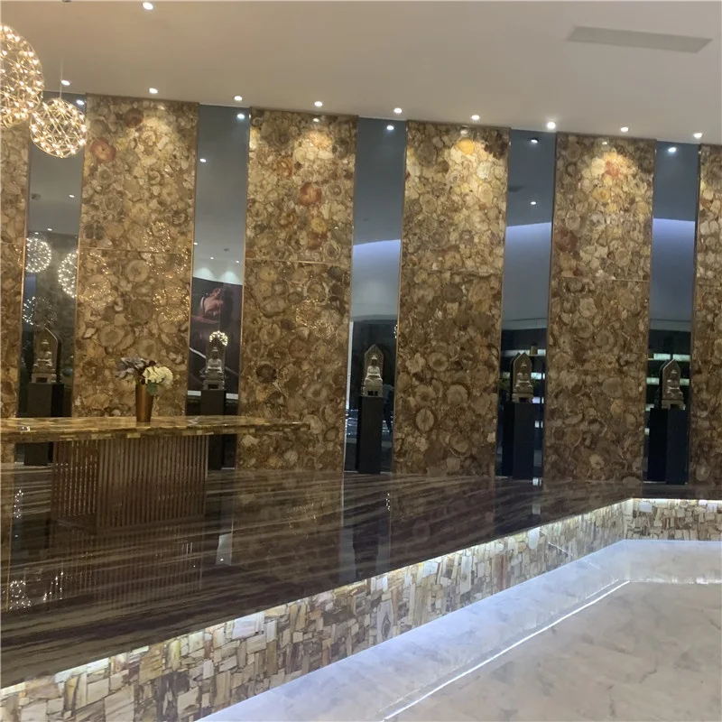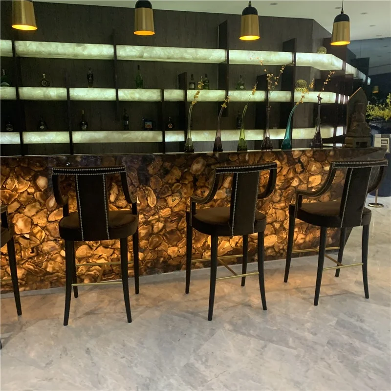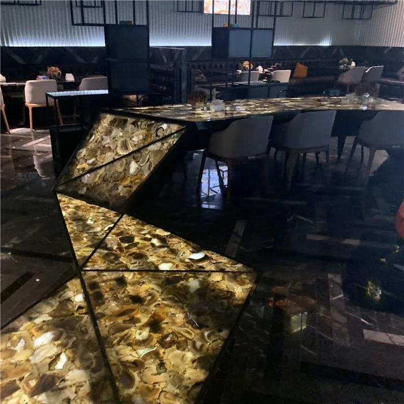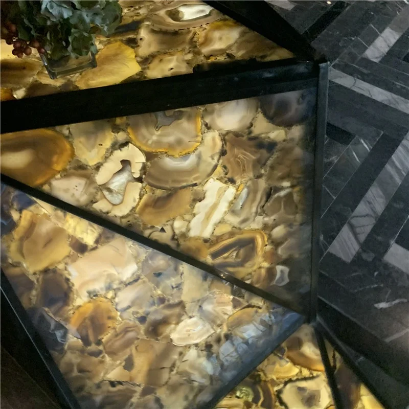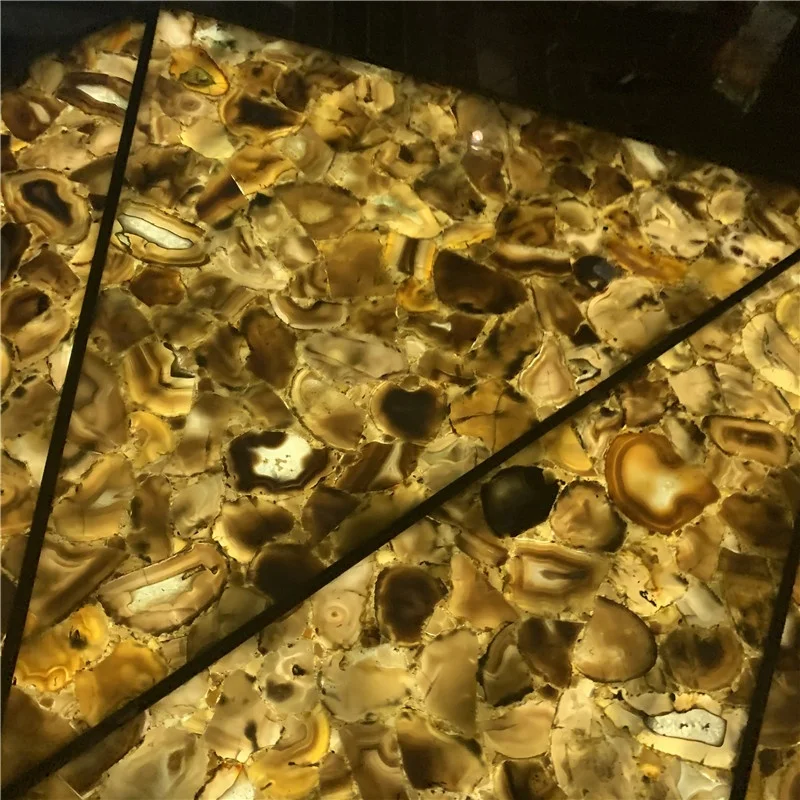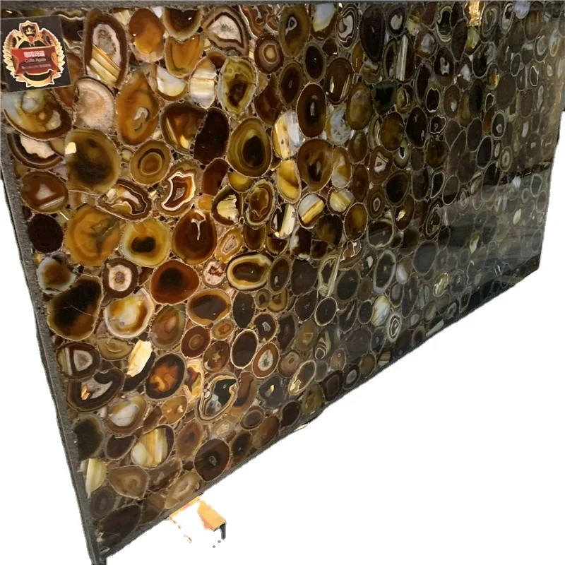 Mesa de café o comedor con tapa de piedra ágata brasileña natural pulida, losa o placas para encimera de bar