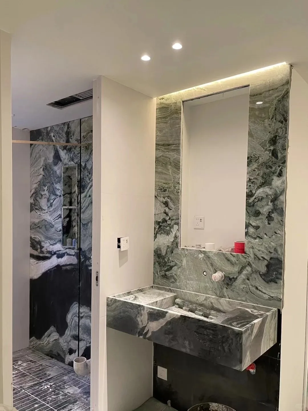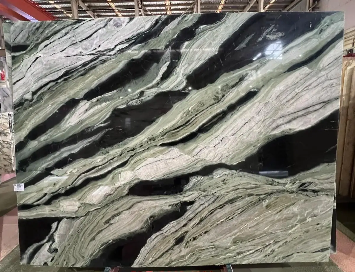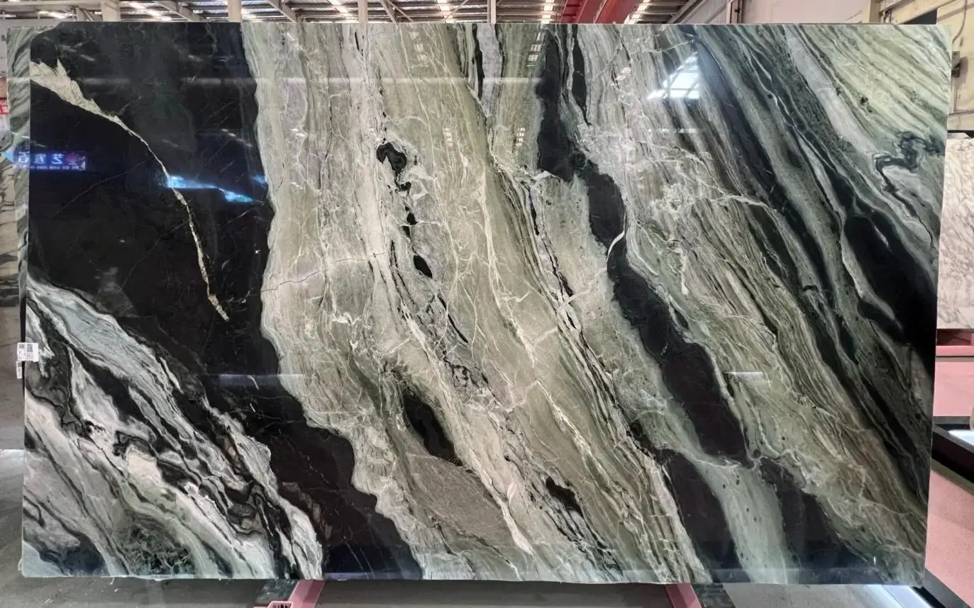 Encimeras modernas de alta calidad en mármol verde panda para interiores, salón, villa, apartamento, pared, baño y mueble de lavabo, mármol natural