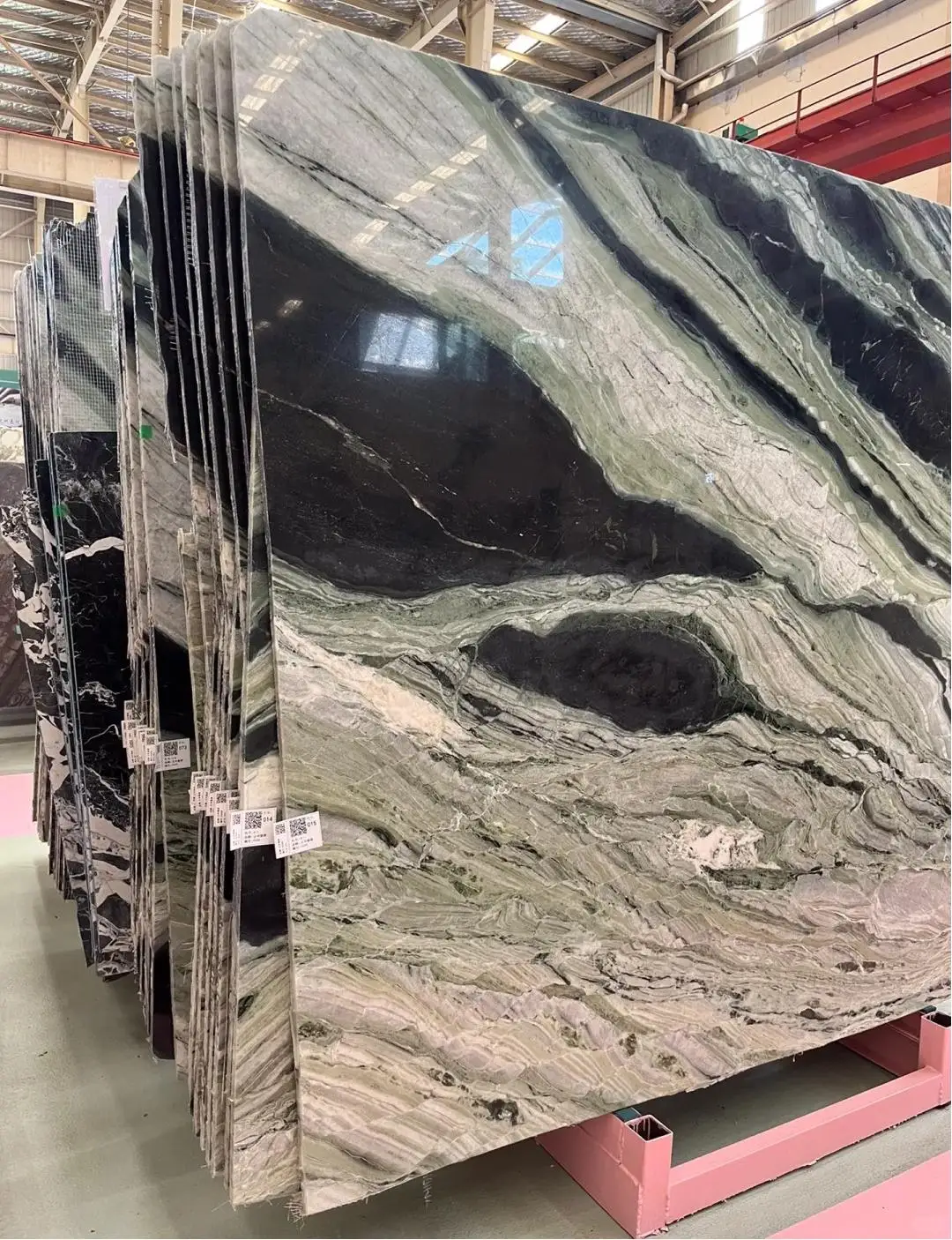 Corte-a-tamaño: cajas de madera fumigadas; Losa: paquetes de madera fumigados. Fumigar