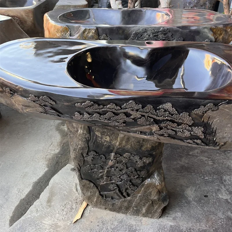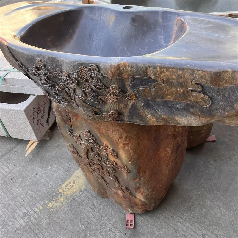 Lavabo de piedra natural de río para decoración exterior en jardín o patio, lavamanos de excelente diseño, lavabo para jardín