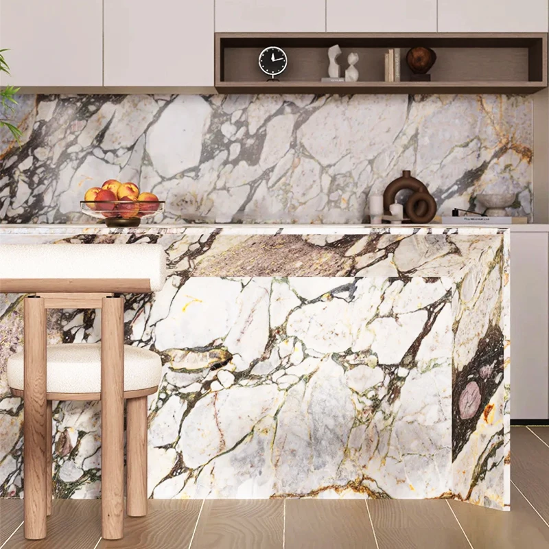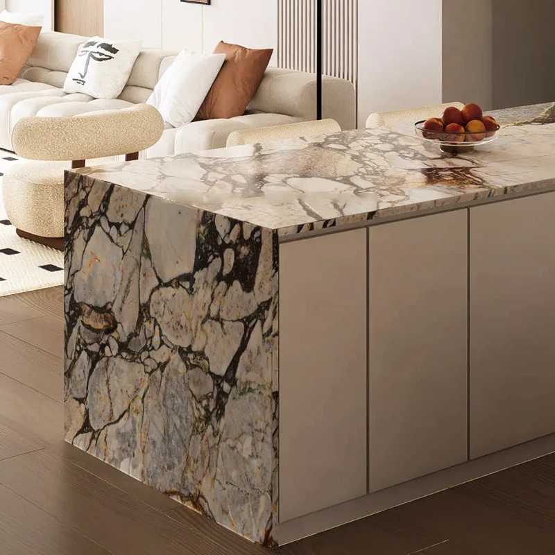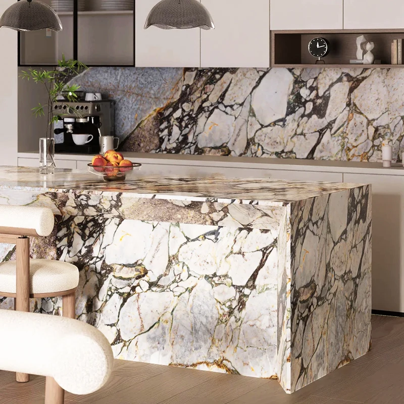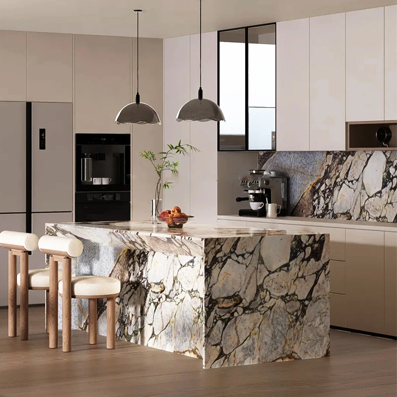 Diseño de encimera en mármol Ocean Storm; mármol azul Calacatta de China para isla de cocina y encimera de mueble de baño