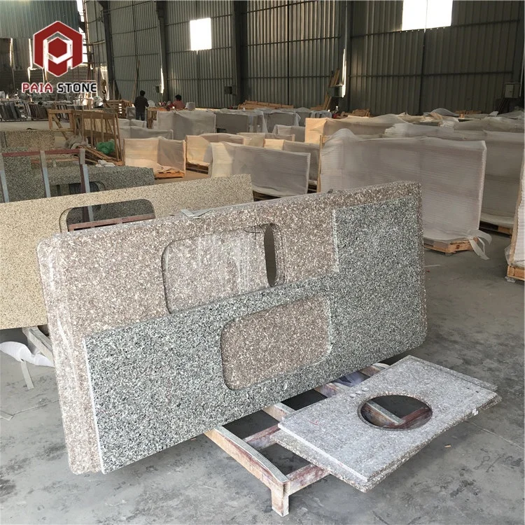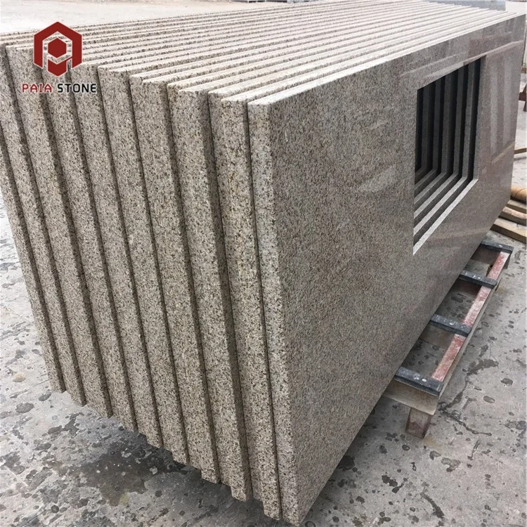 Plaques de granit brun clair pré-découpées et personnalisables chinoises, éviers de cuisine, plans de travail, vente en gros, décoration intérieure