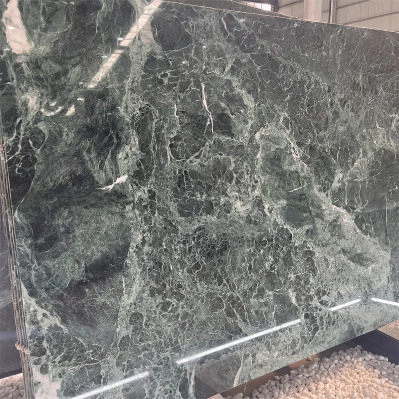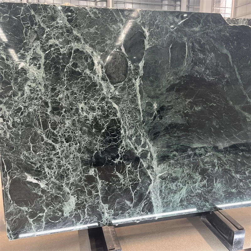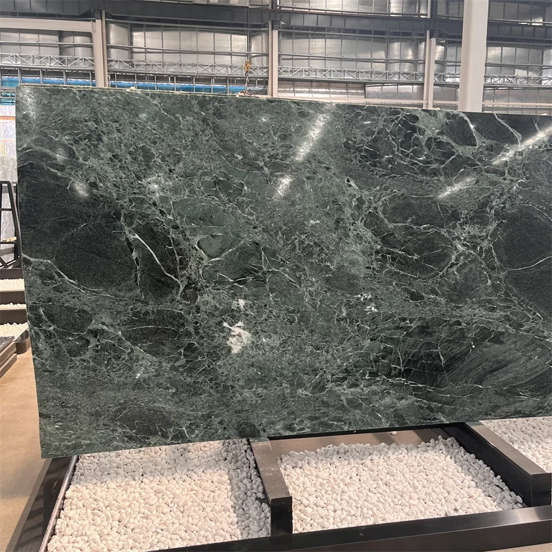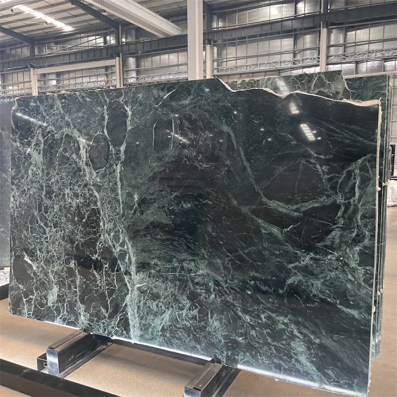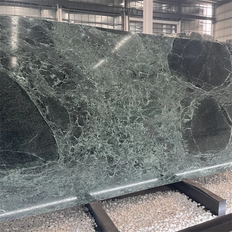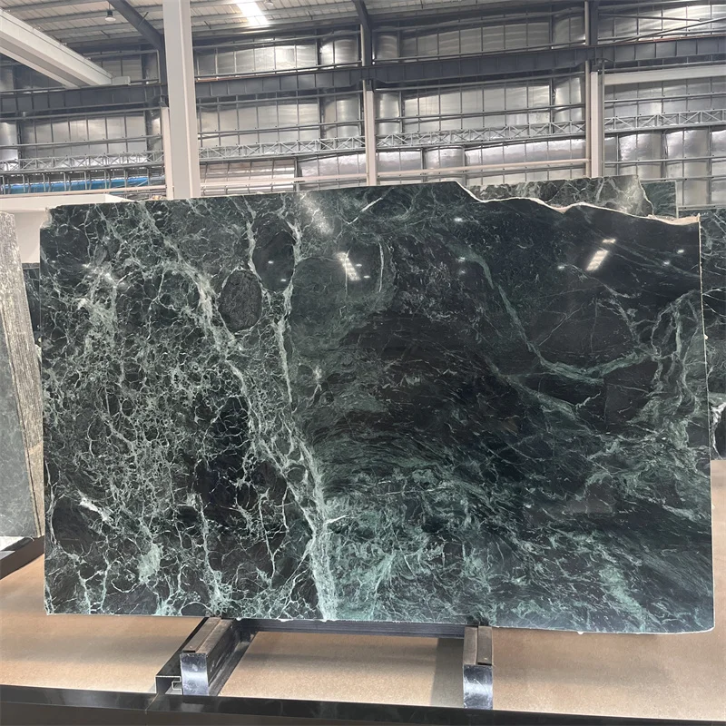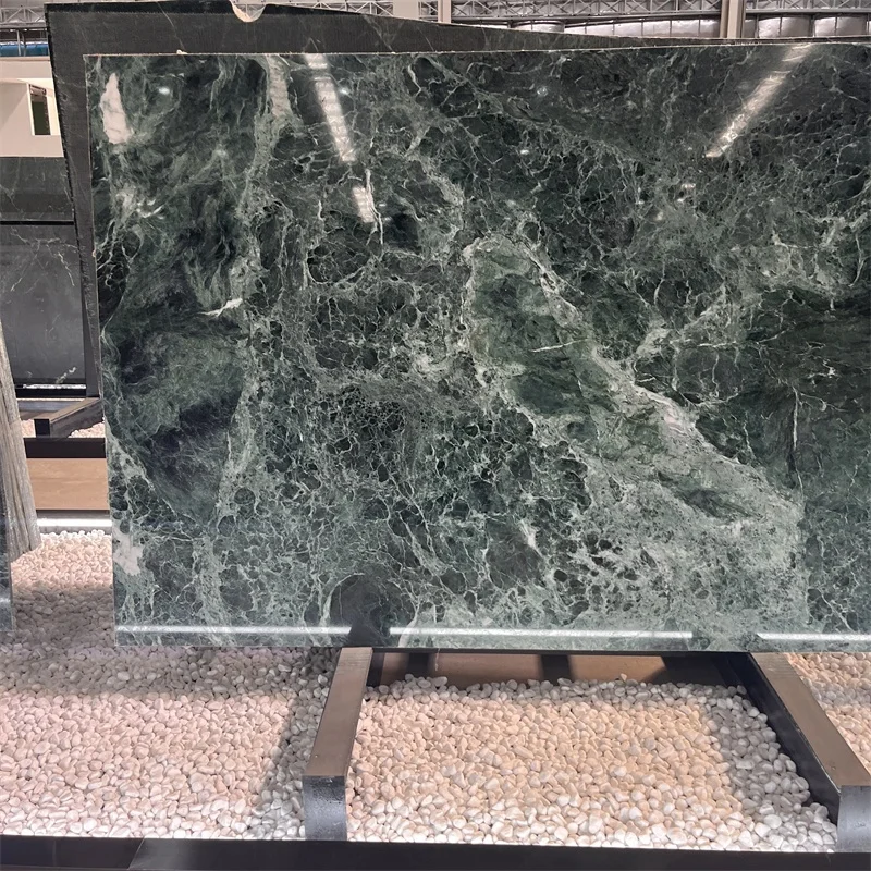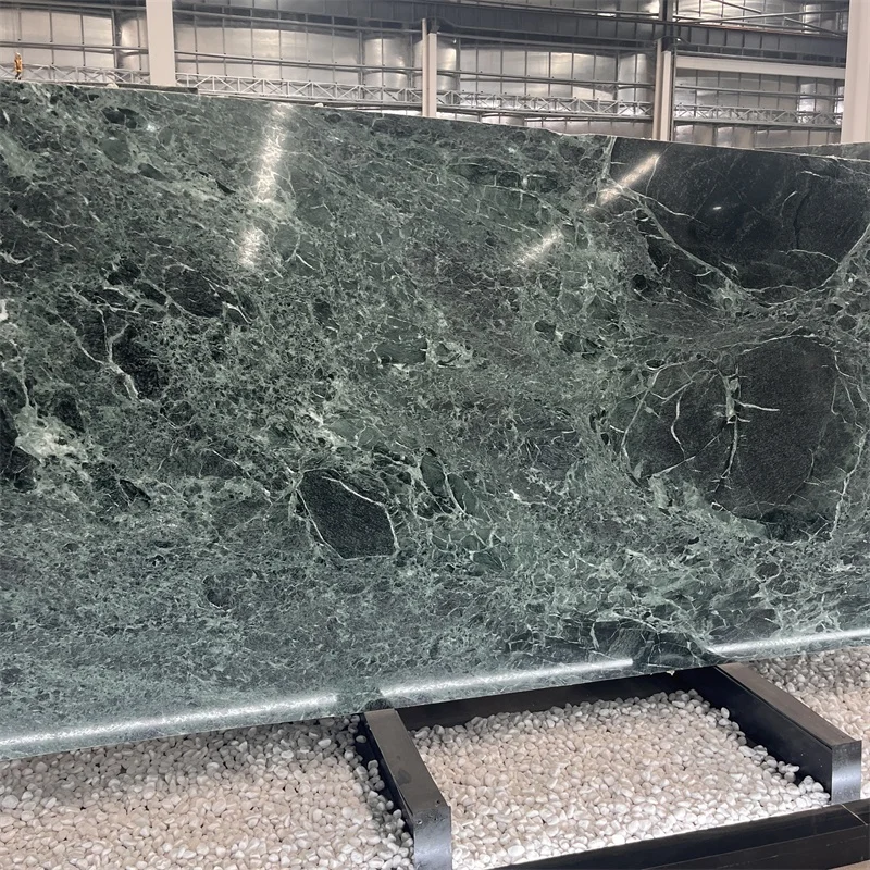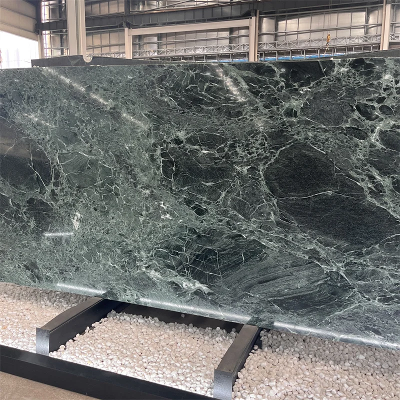 Plaque de marbre vert poli sur mesure pour la décoration murale intérieure, plaque de marbre vert de luxe pour salle de bains, plan de travail en marbre