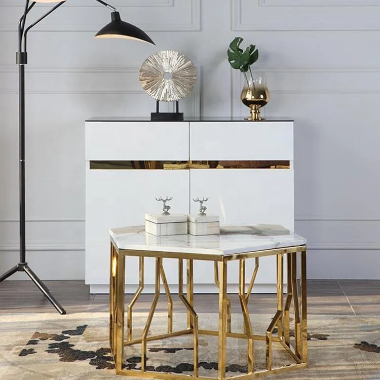 Table centrale pour thé et café, style italien moderne, plateau en marbre