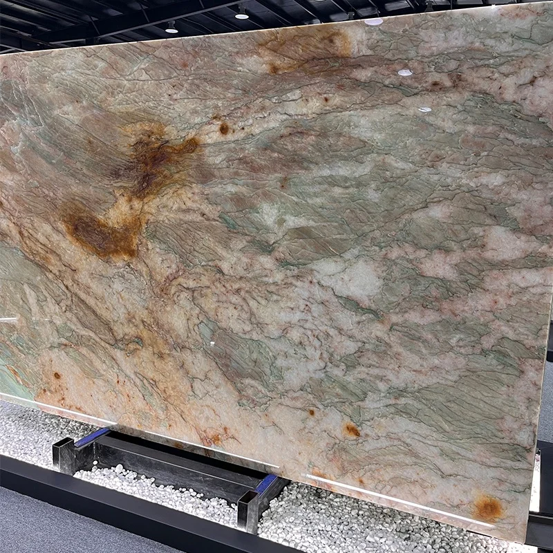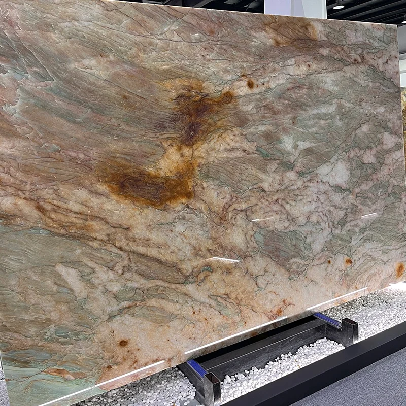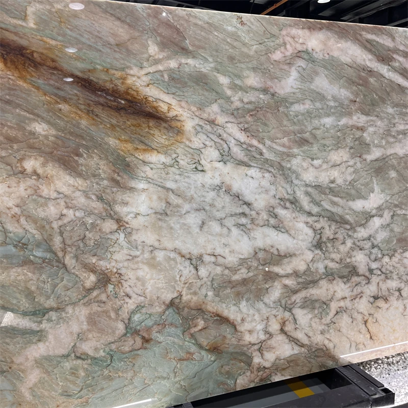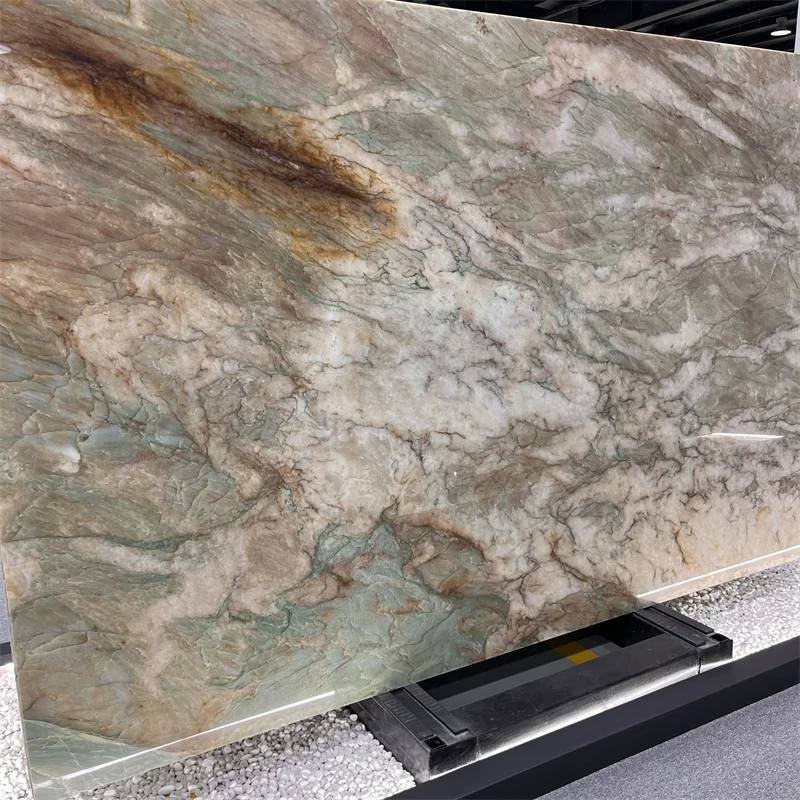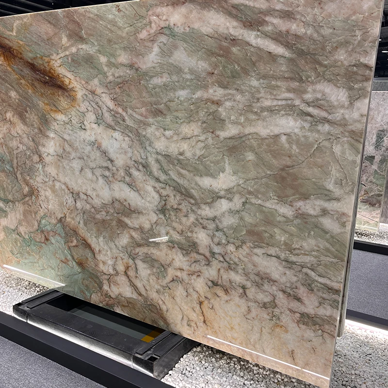 Plaque de quartzite Cristallo Alexandrita de luxe pour mur d'hôtel, carreaux en pierre exotique verte pour plan de travail et dessus de table