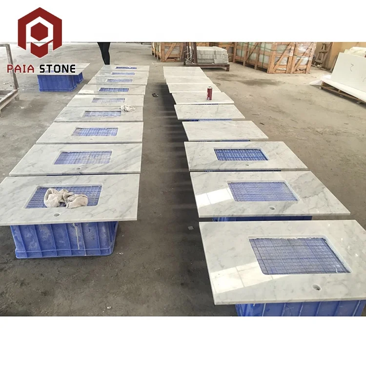 Nouveau style, qualité supérieure, plans de toilette en marbre blanc Bianco Carrara sur mesure pour salle de bain commerciale