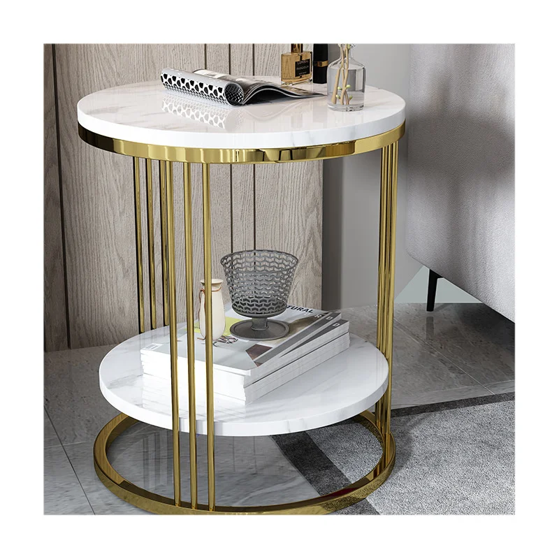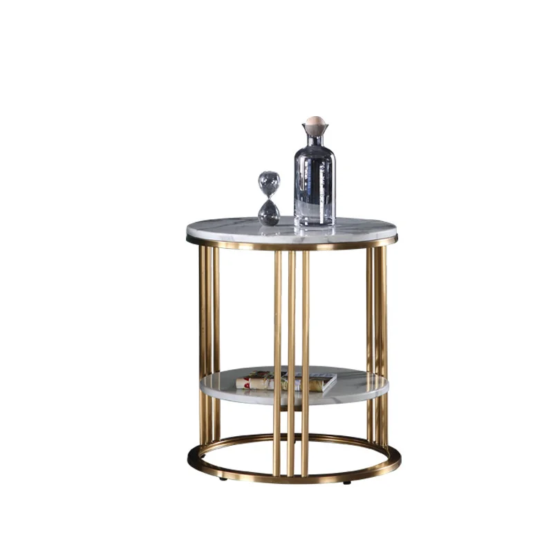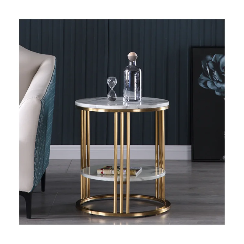 Table centrale ronde en marbre avec dessus en acier inoxydable