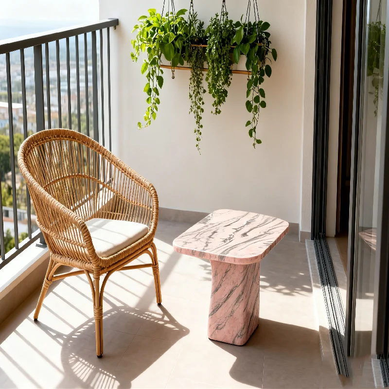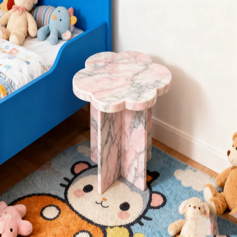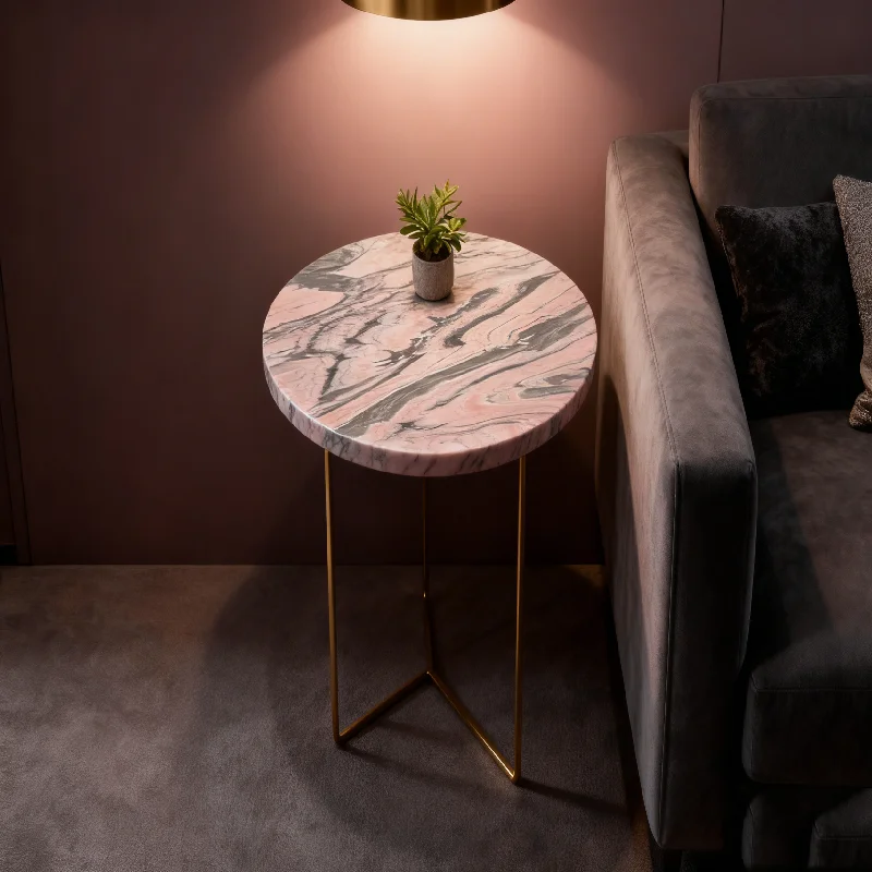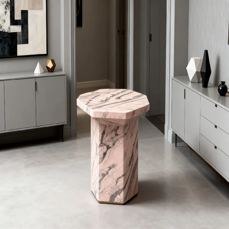 Table d’appoint en marbre rose Rosa Aurora pour décoration intérieure de salon – Meuble de table en marbre, design en marbre rose