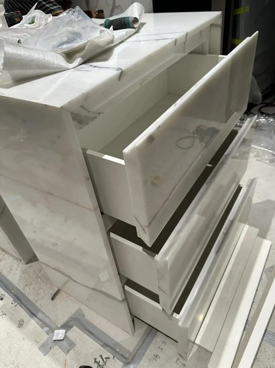 1) પોલિશ ડિગ્રી: 95 ડિગ્રી અથવા તેનાથી વધુ. 2) જાડાઈની ટોલરન્સ: ±0.5 મિમી. 3) વિકર્ણની ટોલરન્સ: ±1 મિમી. 4) સપાટીની સમતલતાની ટોલરન્સ: ±0.3 મિમી. 5) આસન્ન કિનારાની ઊર્ધ્વાધર ટોલરન્સ: ±0.5 મિમી, ઇન્ફ્રારેડ કટિંગ મશીન દ્વારા ચોકસાઈપૂર્ણ કટિંગ. |