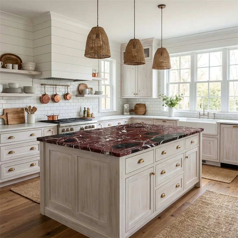 મોડર્ન નેચરલ સ્ટોન રોસો લેવાન્ટો માર્બલ કાઉન્ટર ટોચ પૉલિશ્ડ ટેબલ્સ માર્બલ કિચન કાઉન્ટરટોપ્સ માટે