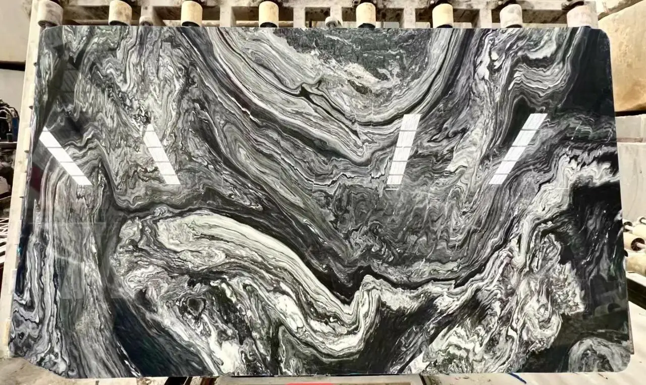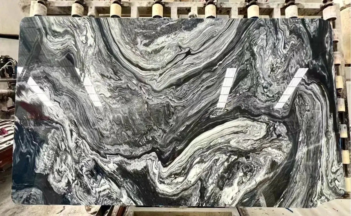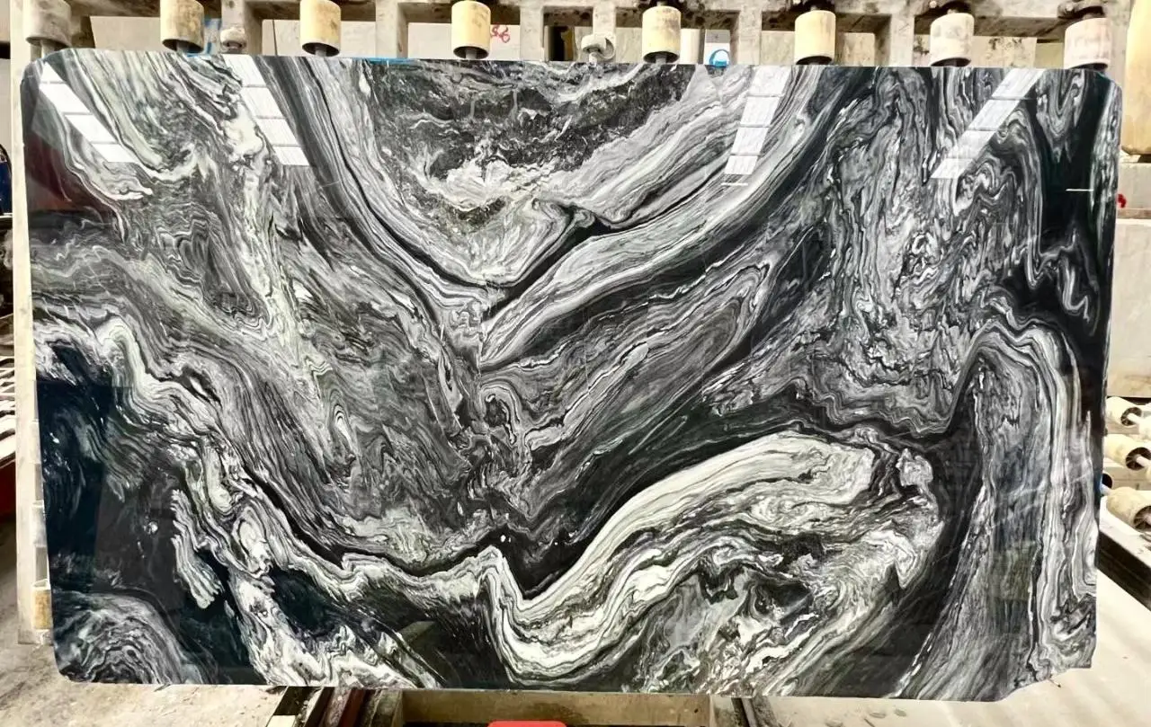 उच्च गुणवत्ता वाले प्राकृतिक काले संगमरमर के टाइल्स, सुंदर पैटर्न वाला लक्ज़री स्टोन, आंतरिक दीवारों और फर्श के लिए पॉलिश और ग्लेज़्ड