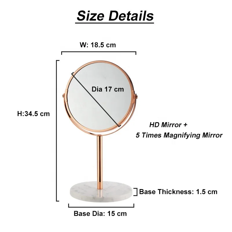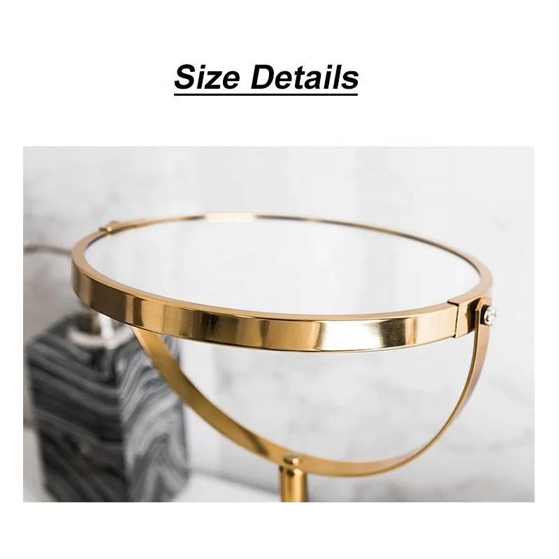 हॉट-सेलिंग क्रोमड धातु की टेबल व्हाइट मार्बल बेस के साथ, सुंदरता ड्रेसिंग के लिए गोल कॉस्मेटिक दर्पण