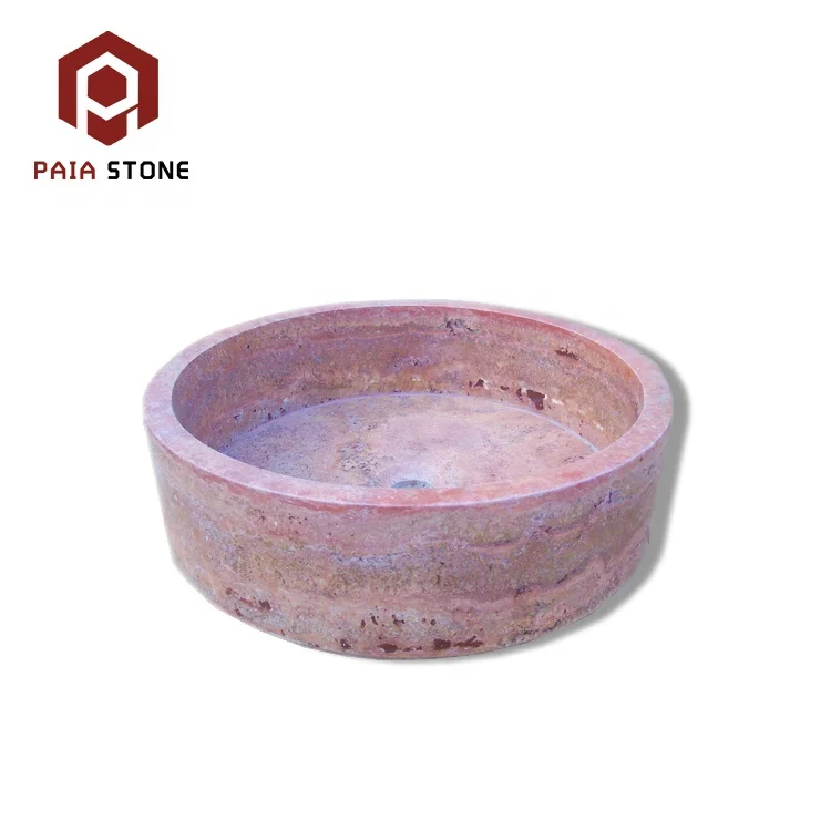 बाथरूम के लिए प्राकृतिक पत्थर का वॉश बेसिन, लाल संगमरमर का गोलाकार पत्थर का सिंक, आंतरिक विला के बाथरूम डेकोर के लिए