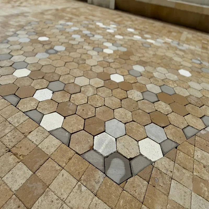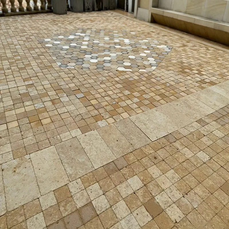 आधुनिक प्राकृतिक चूना पत्थर का फर्श मार्बल, बाथरूम के टाइल ट्रिम और आंतरिक दीवार सजावट के लिए पत्थर का मोज़ेक पेविंग