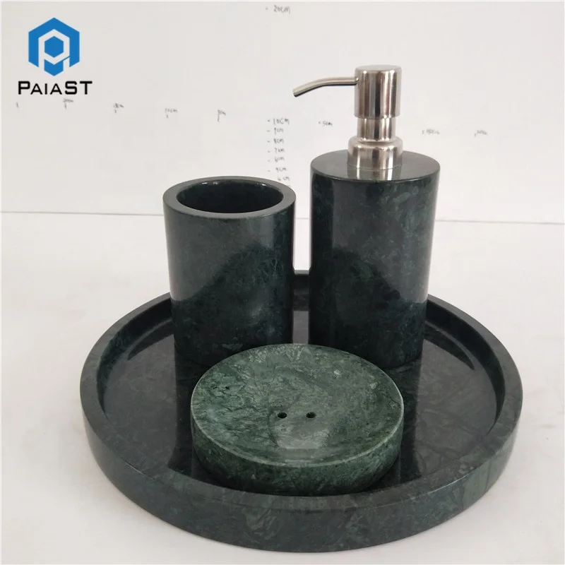 अमेज़न थोक बिक्री: प्राकृतिक पत्थर से बना गहरे हरे रंग के संगमरमर का 4 टुकड़ों का बाथरूम एक्सेसरी सेट