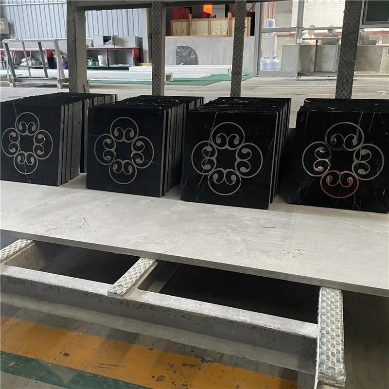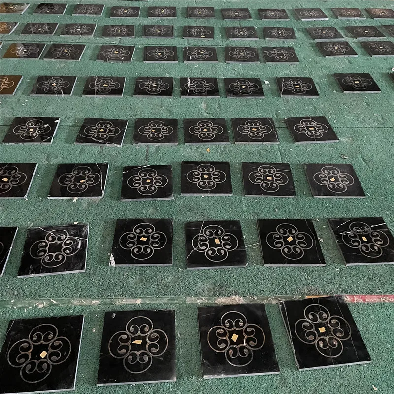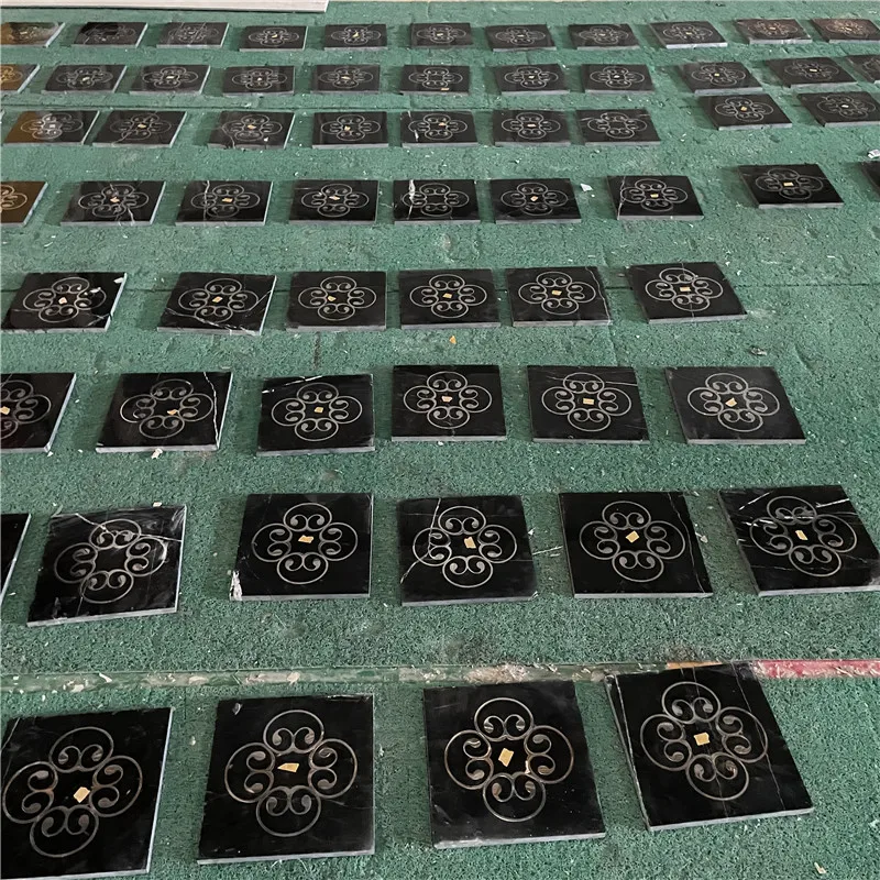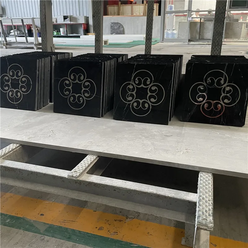 Ubin Panel Dinding Black Nero Margiua dengan Teknologi Waterjet, Ubin Lantai Marmer Waterjet dengan Aksen Logam