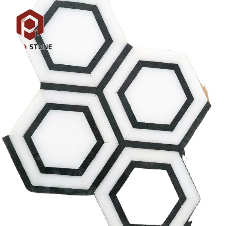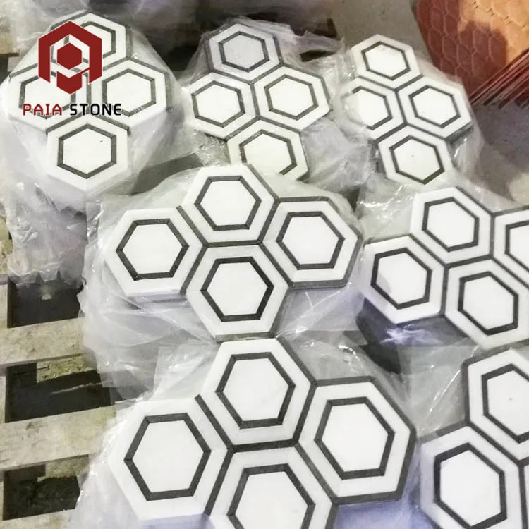 Desain Dekoratif, ubin mosaik marmer putih Carrara waterjet heksagon yang terjangkau