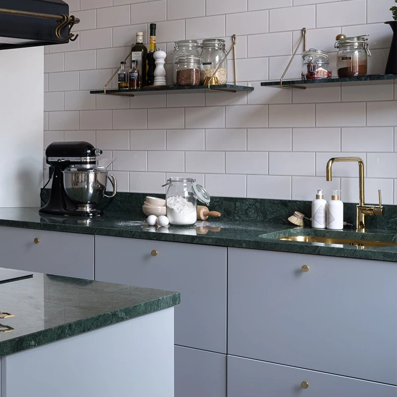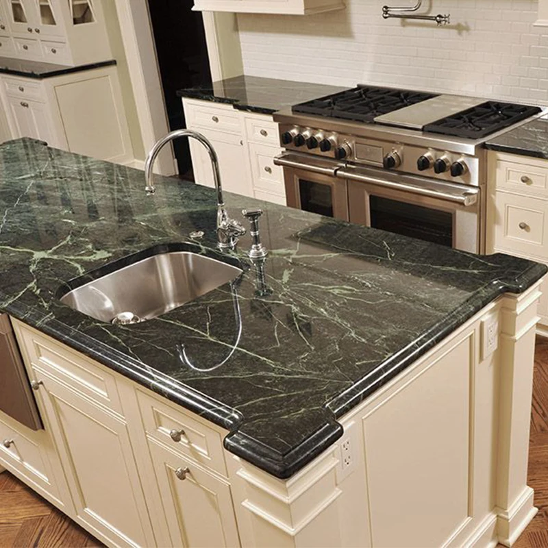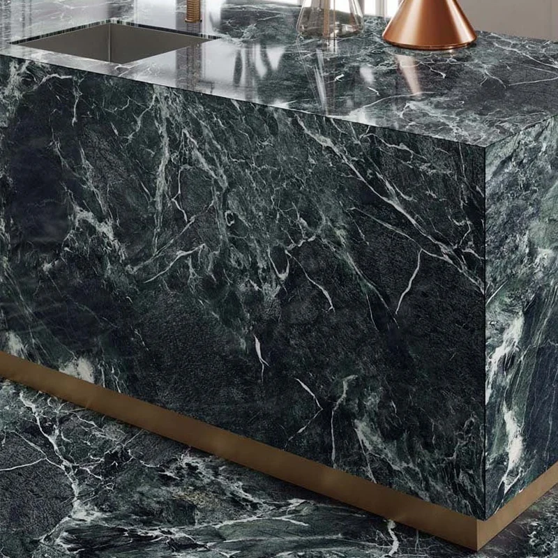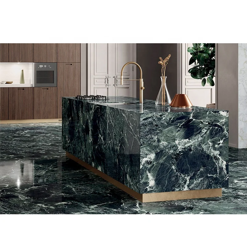 Meja Dapur Marmer Verde San Denise Italia Verde Alpi, Hijau Gelap, Pulau Dapur dari Batu