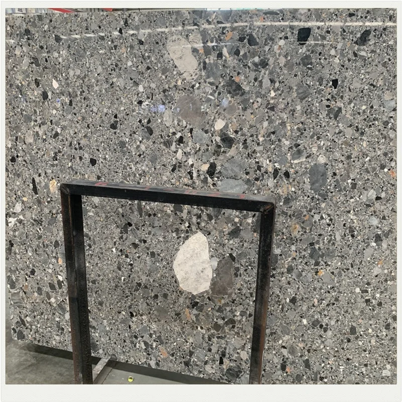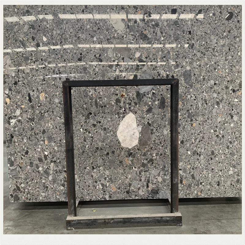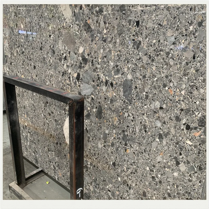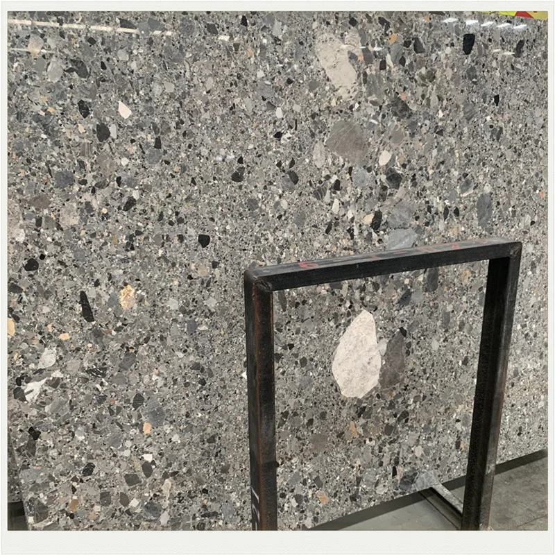 Marmer Macchiato Abu-abu Multikolor untuk desain dinding interior rumah, lantai, dan meja dapur.