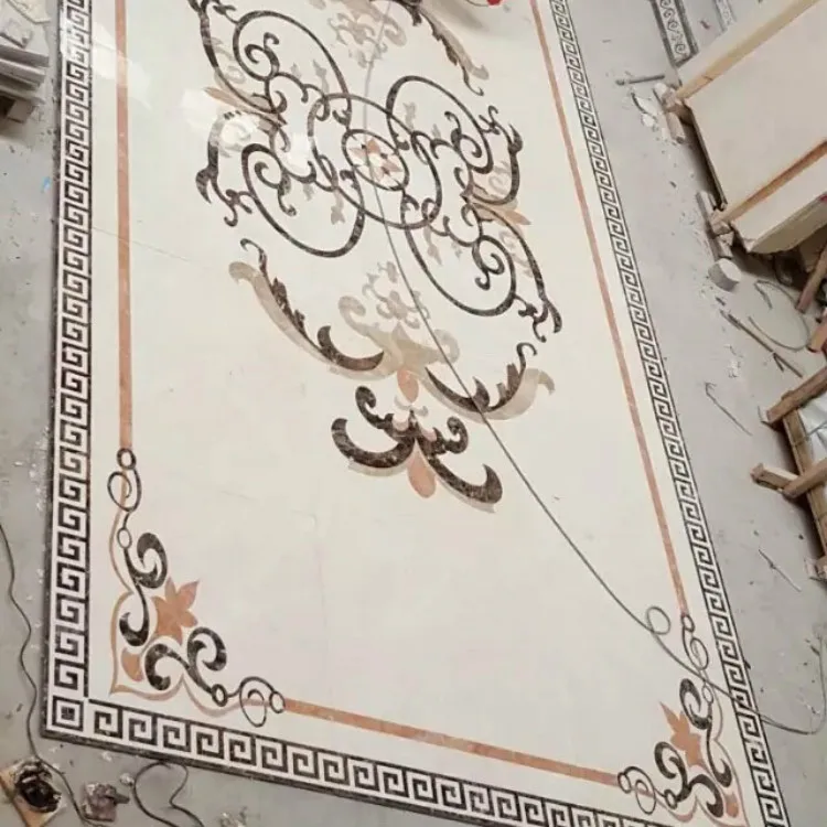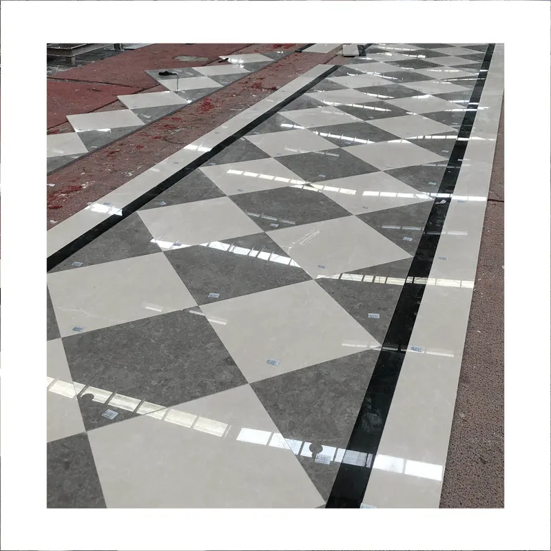 Desain ubin lantai marmer abu-abu dan putih bergaya modern untuk proyek vila