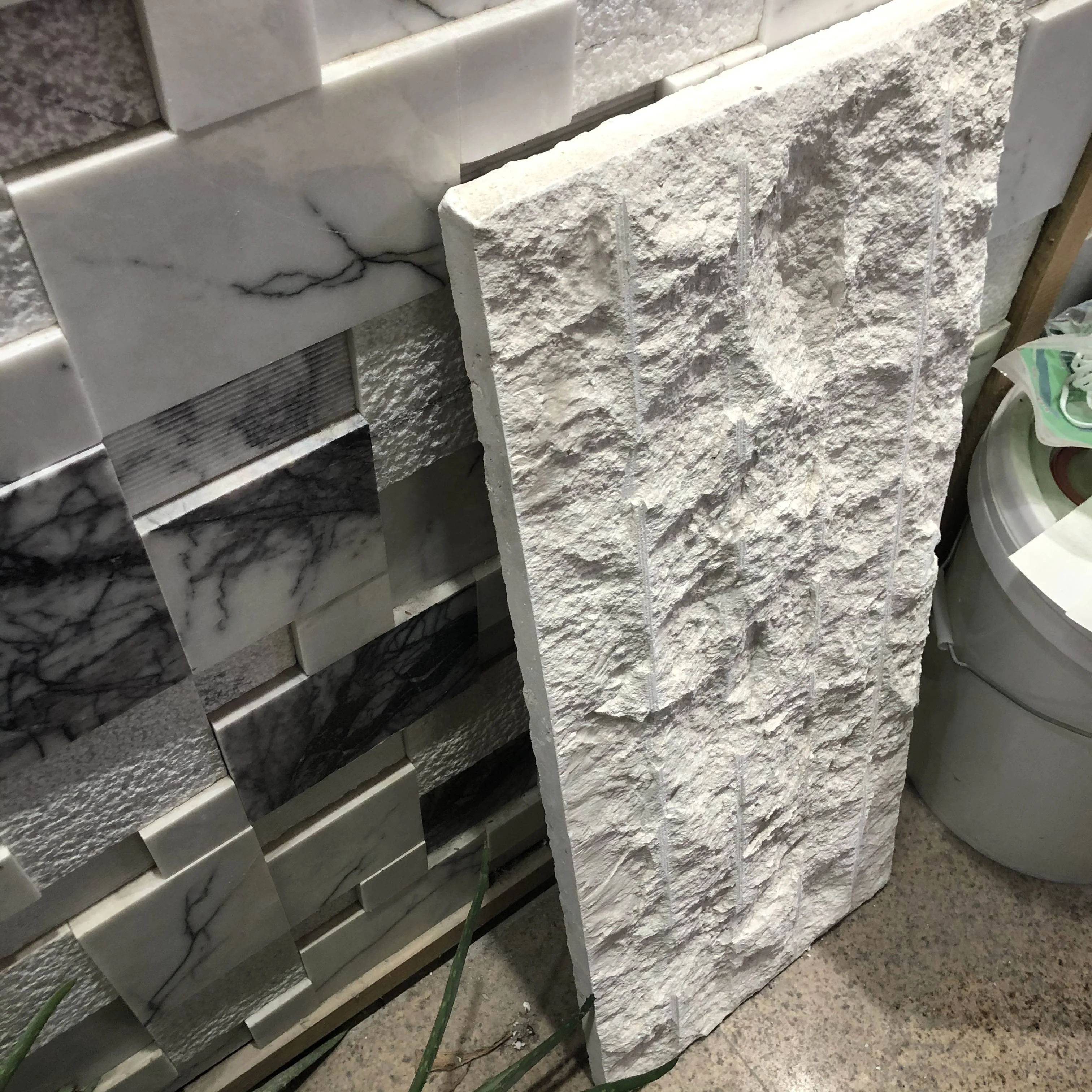 Pemasok Grosir batu kapur putih bertekstur belah untuk bagian luar rumah, batu aliran air, pelapis dinding eksterior